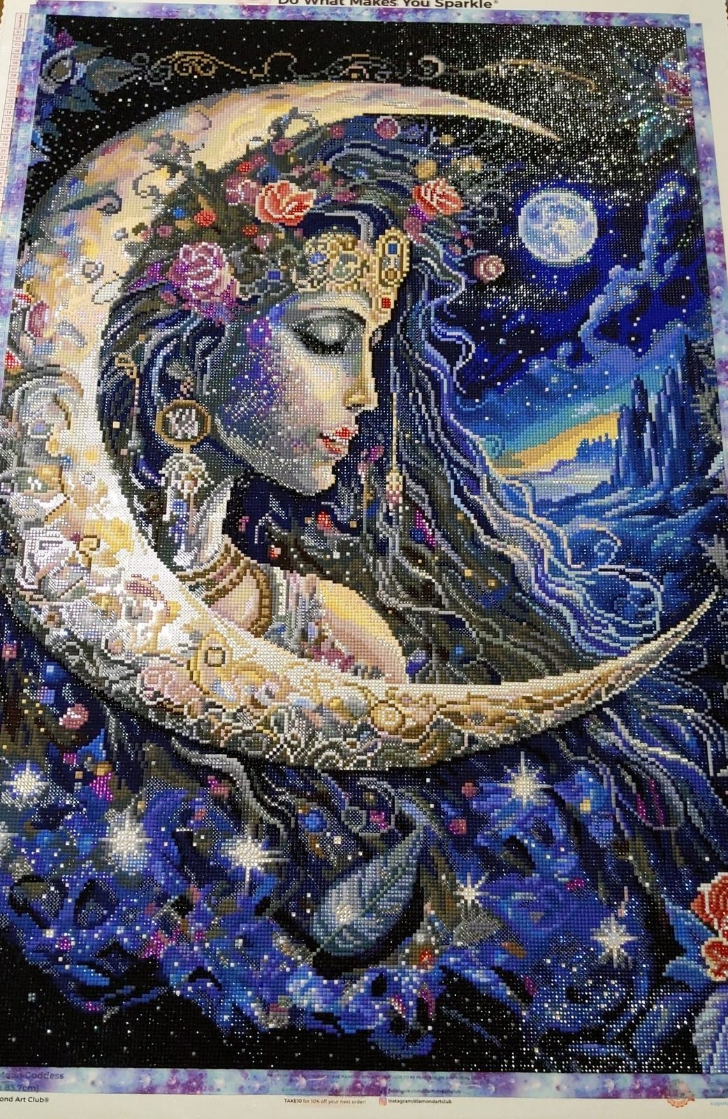This painting is absolutely beautiful, and I had fun working on this treasure. Diamond painting is my happy place!