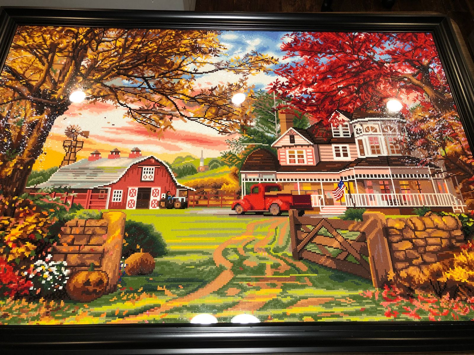 This gorgeous autumn scene is truly a show stopper with these colors. I’m so happy with how it turned out. A simple black frame just makes the colors and sparkle pop.