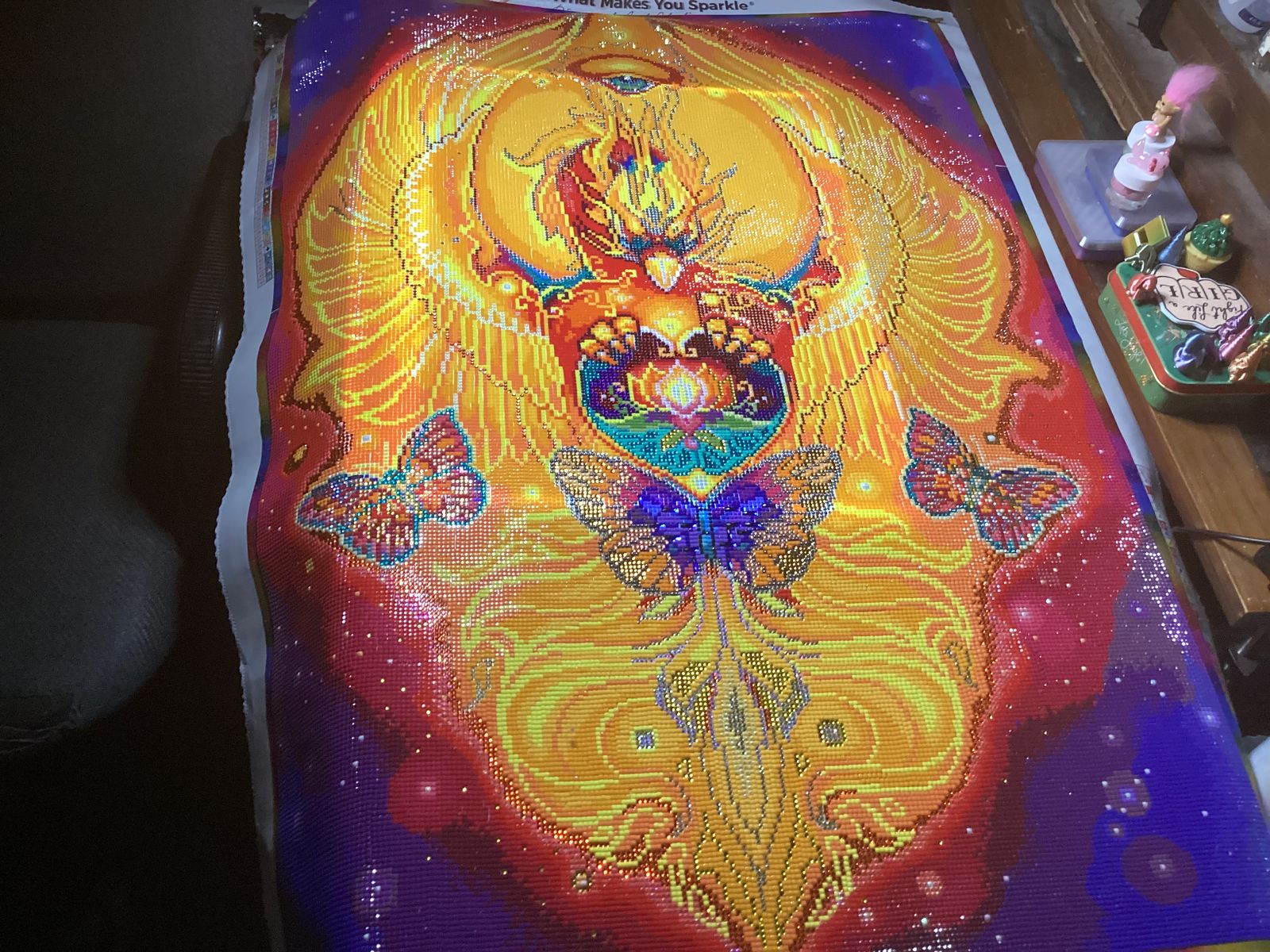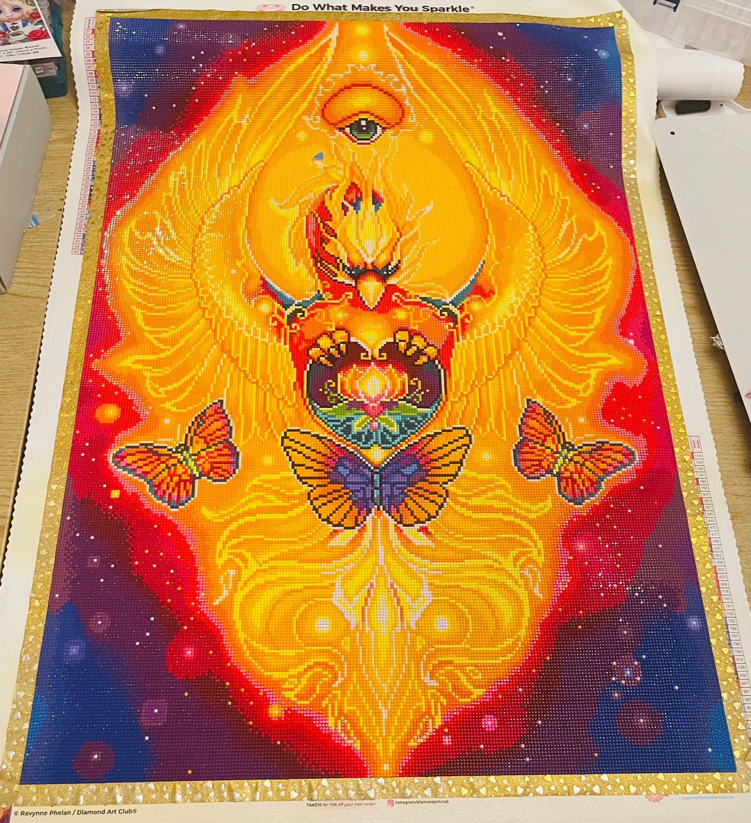He's beautiful. So sparkly and fun to make because of all the brilliantly bright colors. I prefer bright colors over neutral colors so Phoenix was absolutely perfect for someone like me. Seeing it online is one thing, but seeing it in person is another! It's so vibrant and gorgeous to look at. This artist is genius! I hope to see more and more paintings like this. With these same colors and blending.