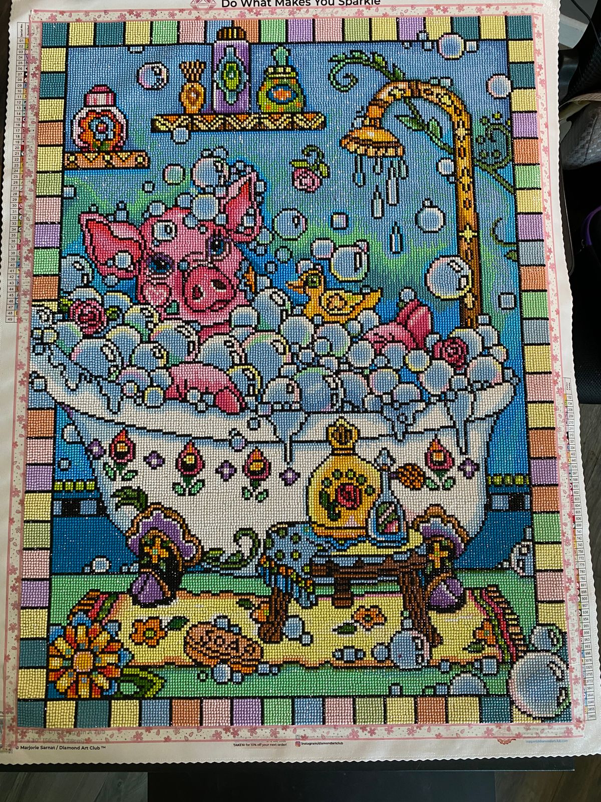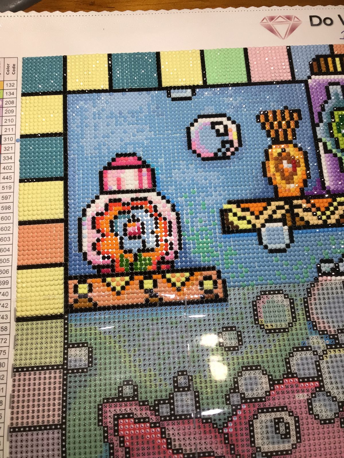This was so fun and so sparkling I love it!!! It was my first like this type. I usually do landscapes. I can’t wait to hang it in the bathroom. So cute ❤️❤️❤️