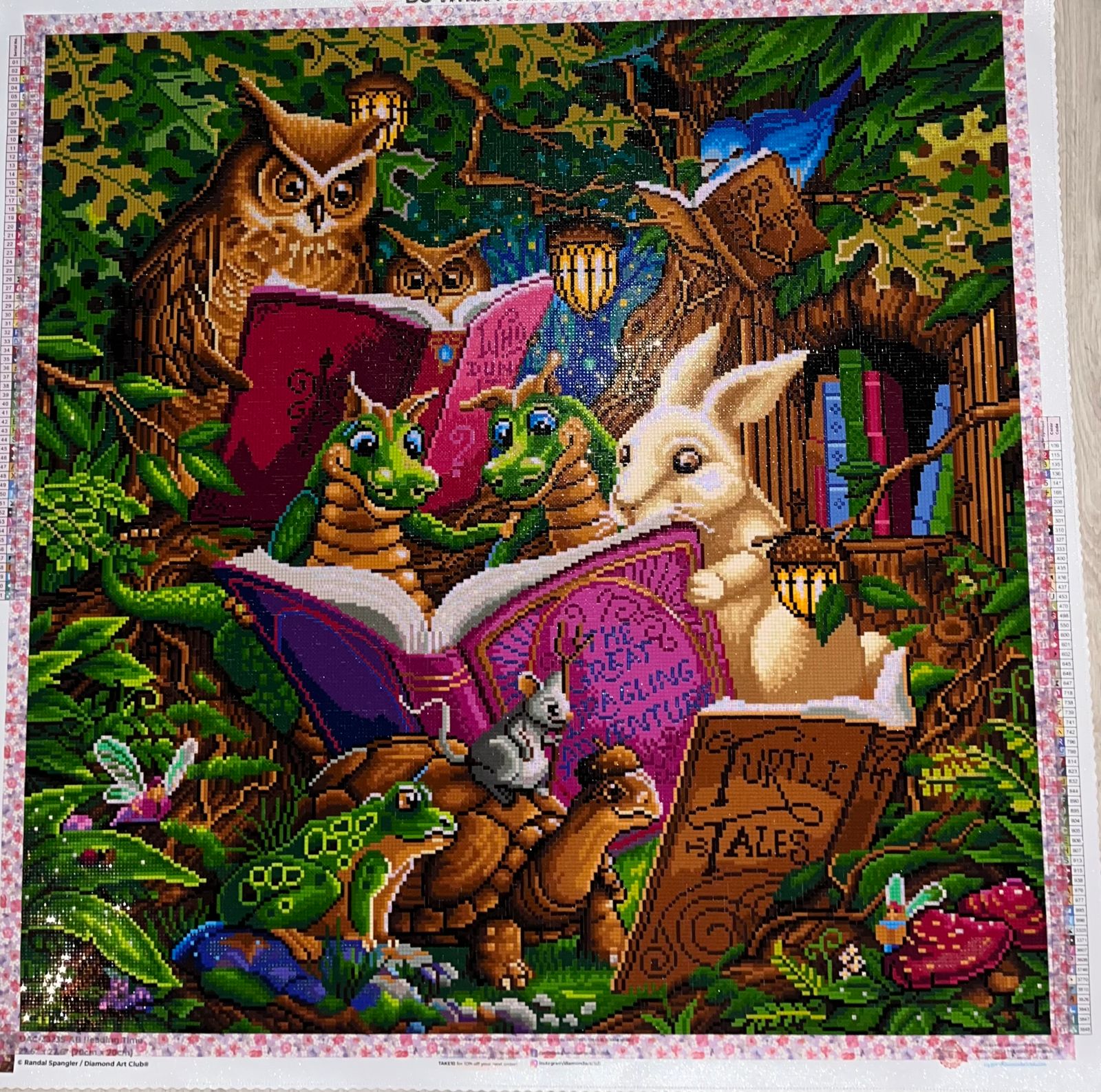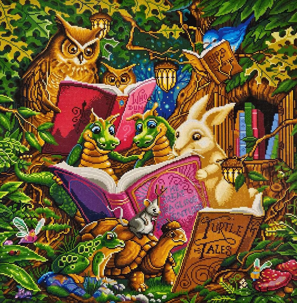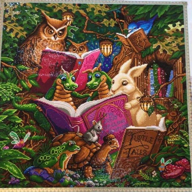 Such a cute painting showing animals reading together. Love all detail and colors. Was a lot of fun to do.