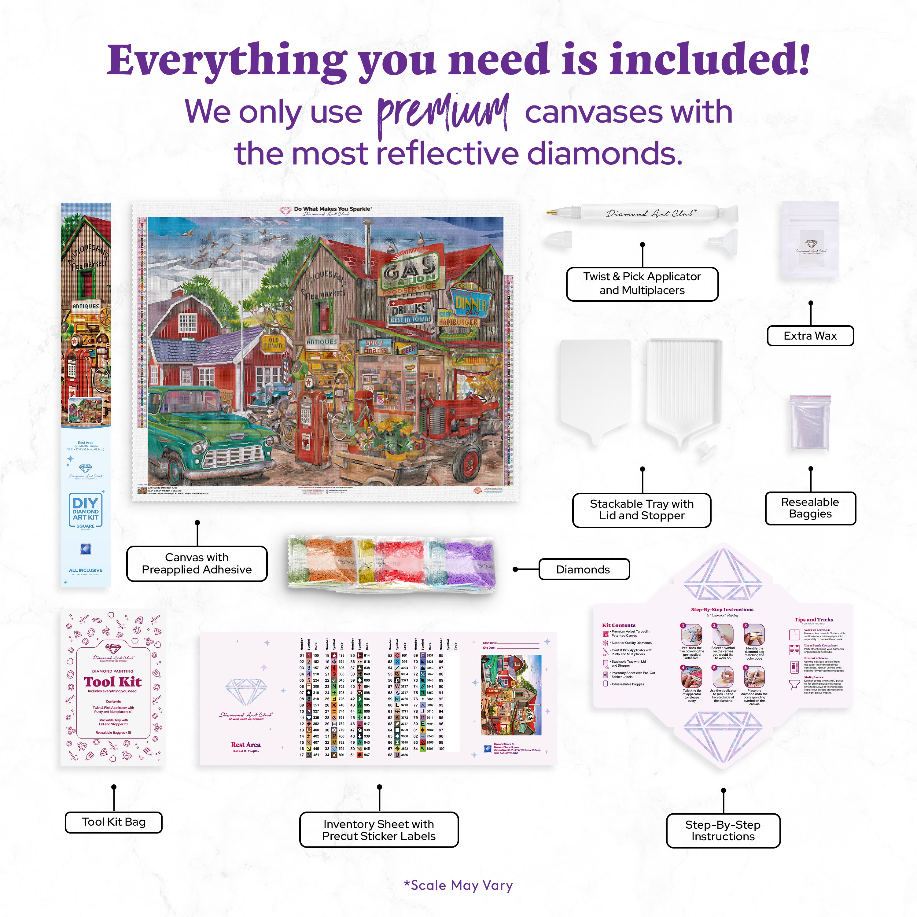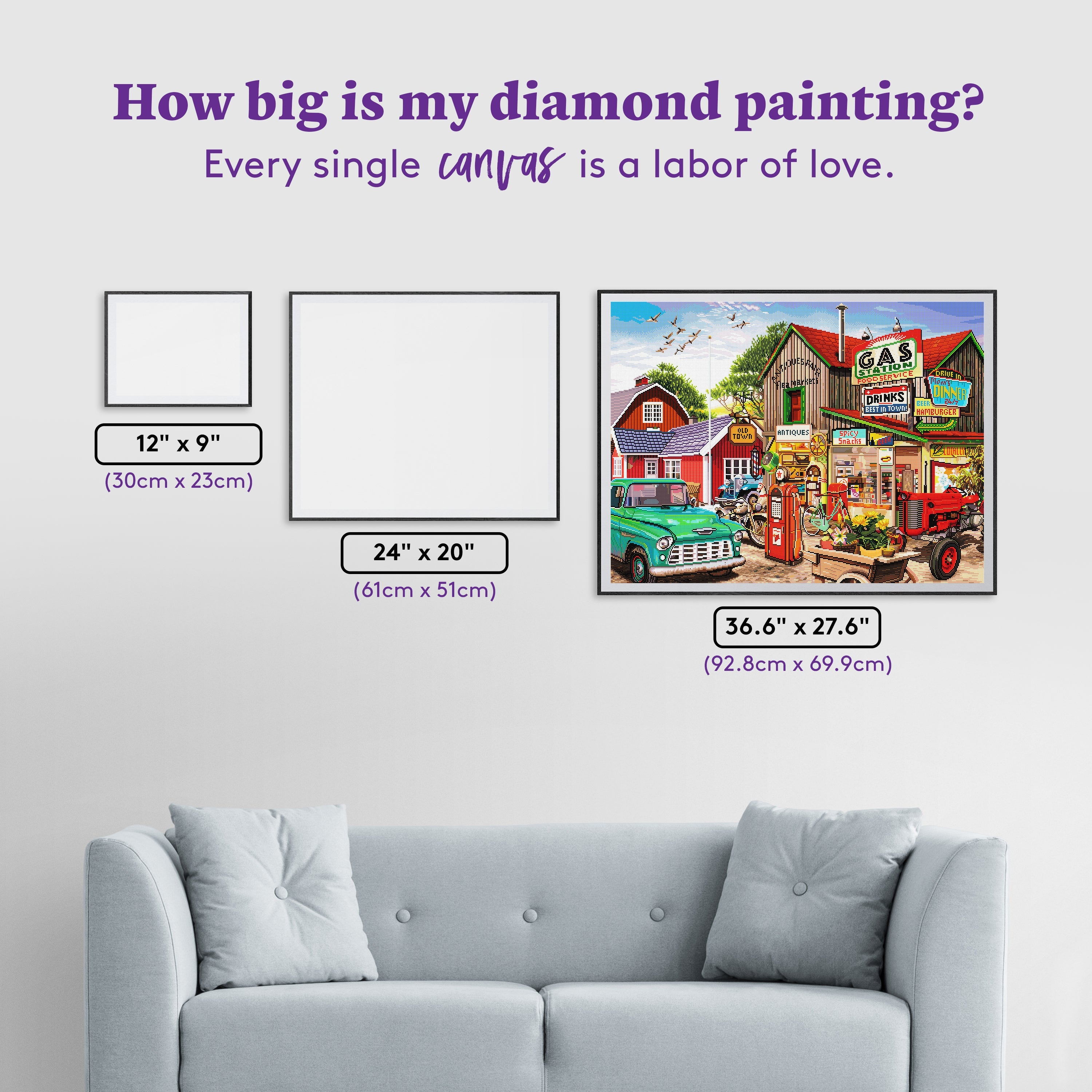 Back in the seventies, my husband and his brother owned a gas station in our small town. That looked a lot like thos one. I had this kit in my cart went it first came out and did not act fast enough. It sold out quickly and sad it was discontinued. I waited and waited. A similar kit was on another company's website, but it was sold-out, also. Out of the blue I got the word from DAC that it was available and I checked out so very fast! It sold out again with a very short time. I cant wait to work on it with all the colors it has and it will be a present for my husband! I am very happy to get this get from my favorite, Diamond Art Club! Thank you!