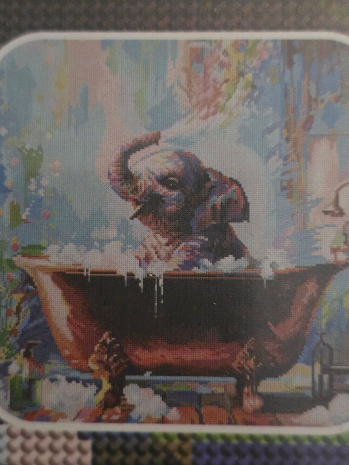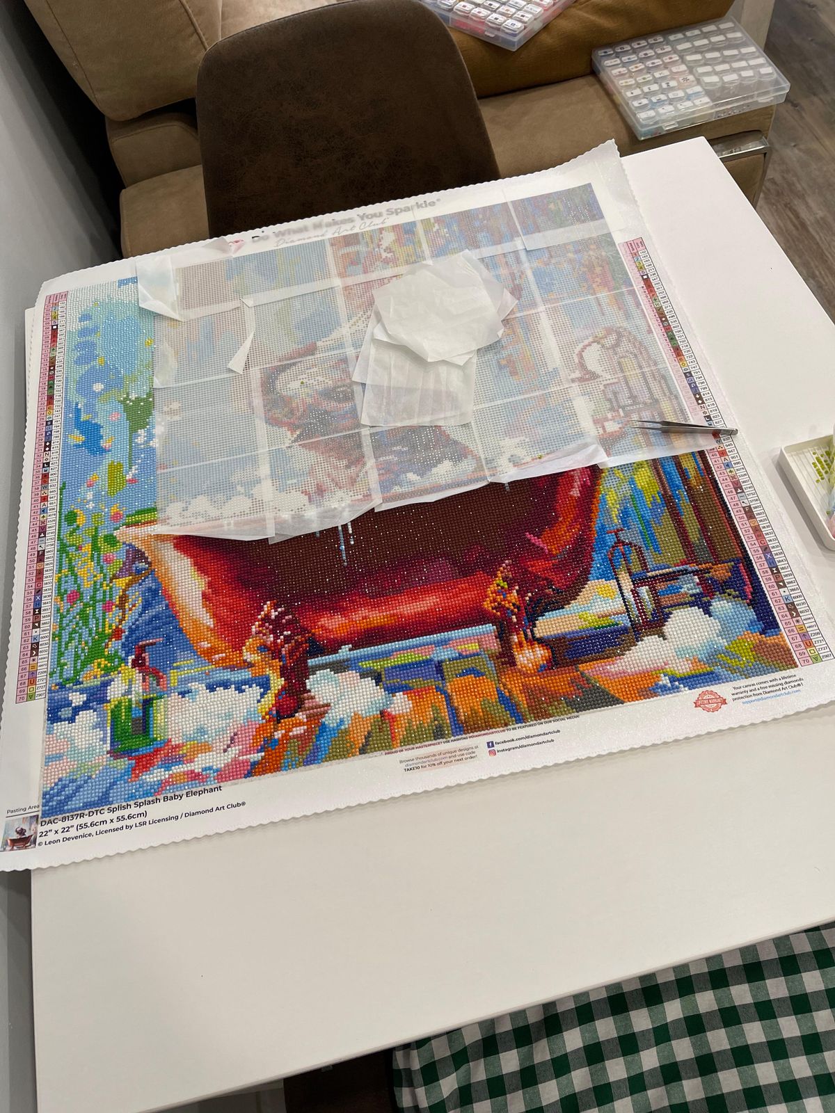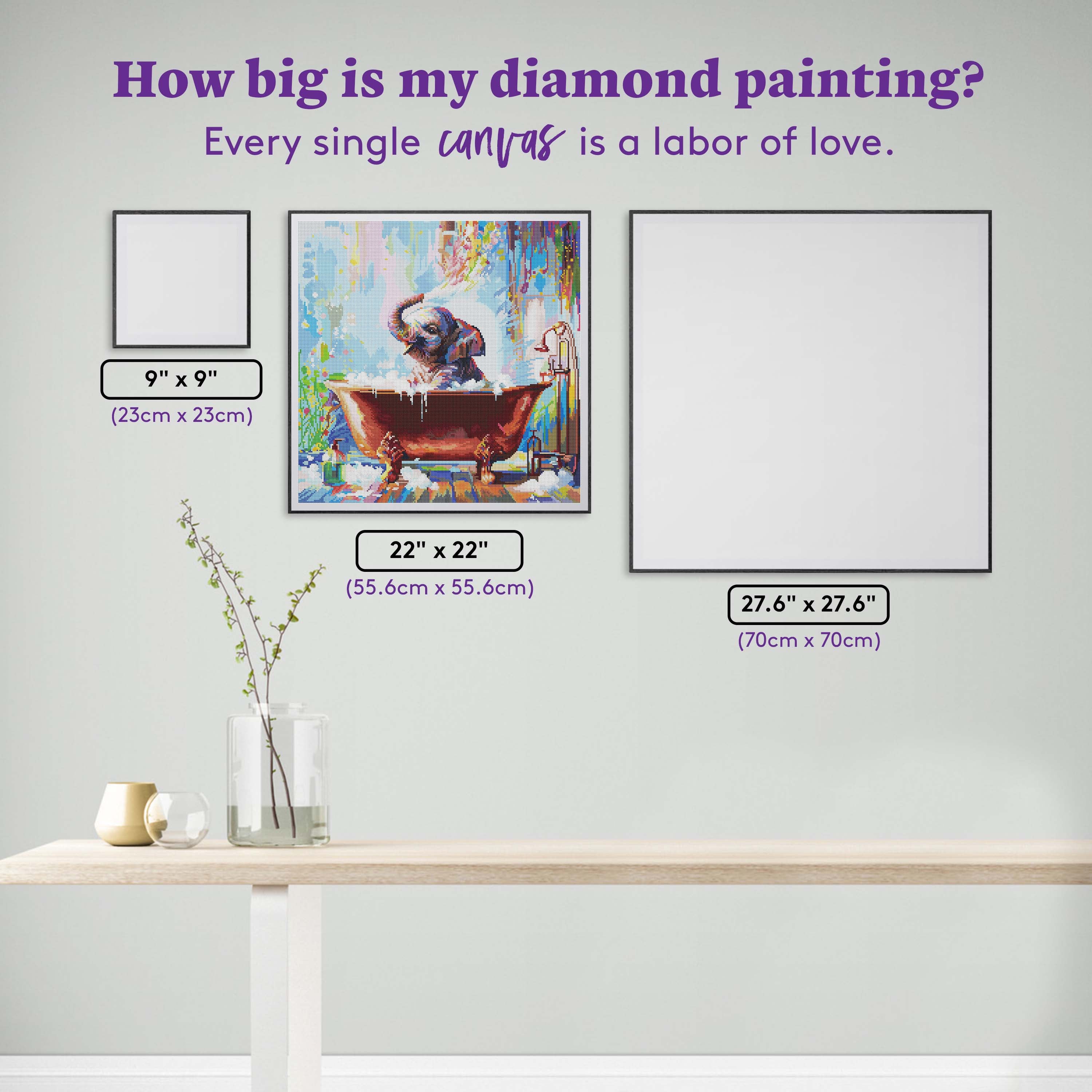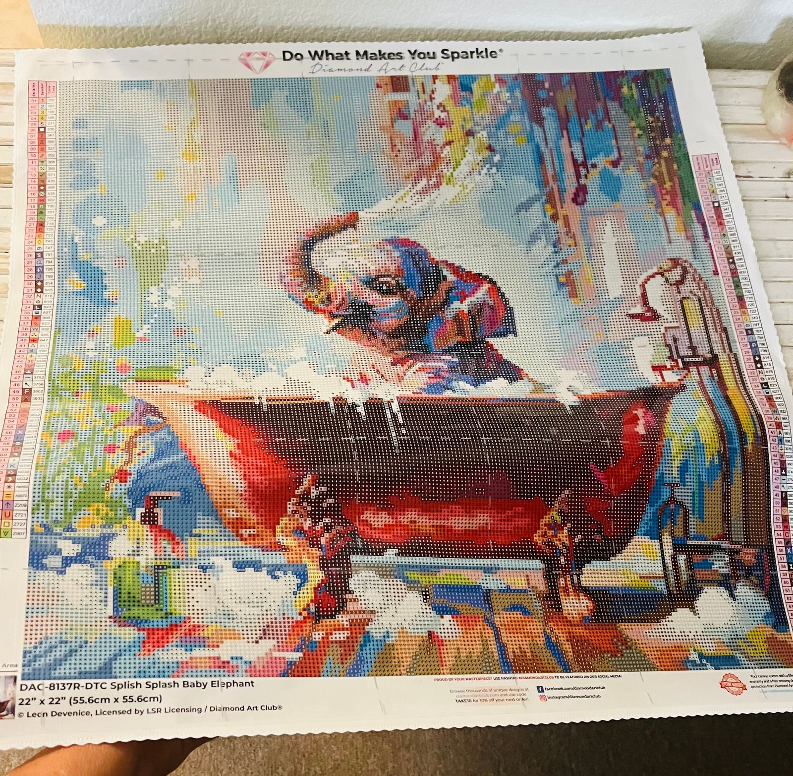 Diamond Painting Splish Splash Baby Elephant 22" x 22" (55.6cm x 55.6cm) / Round with 70 Colors including 2 ABs and 4 Fairy Dust Diamonds / 40,804