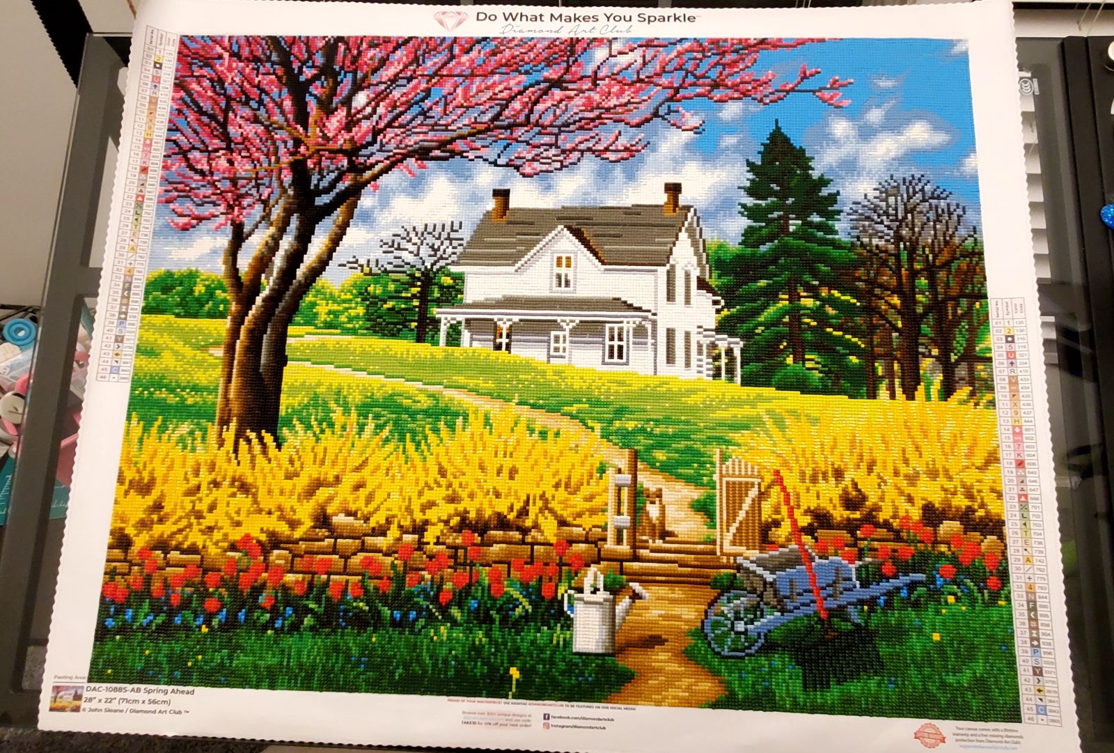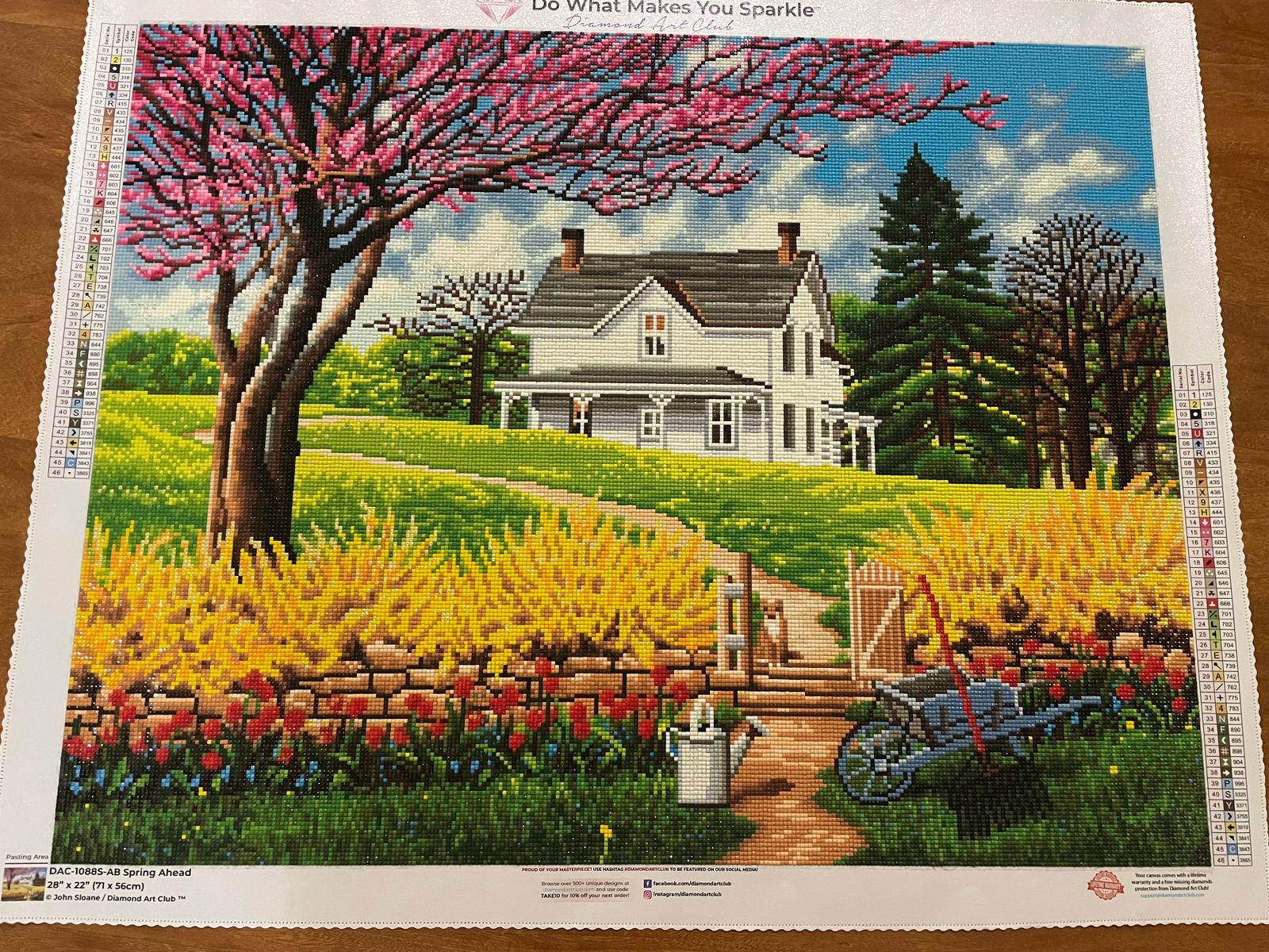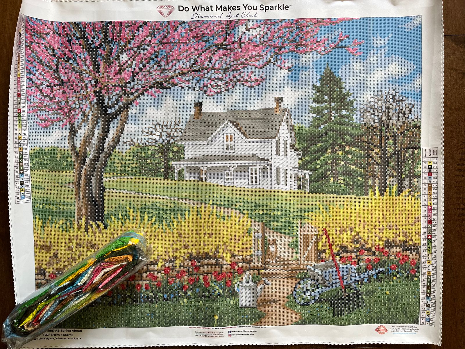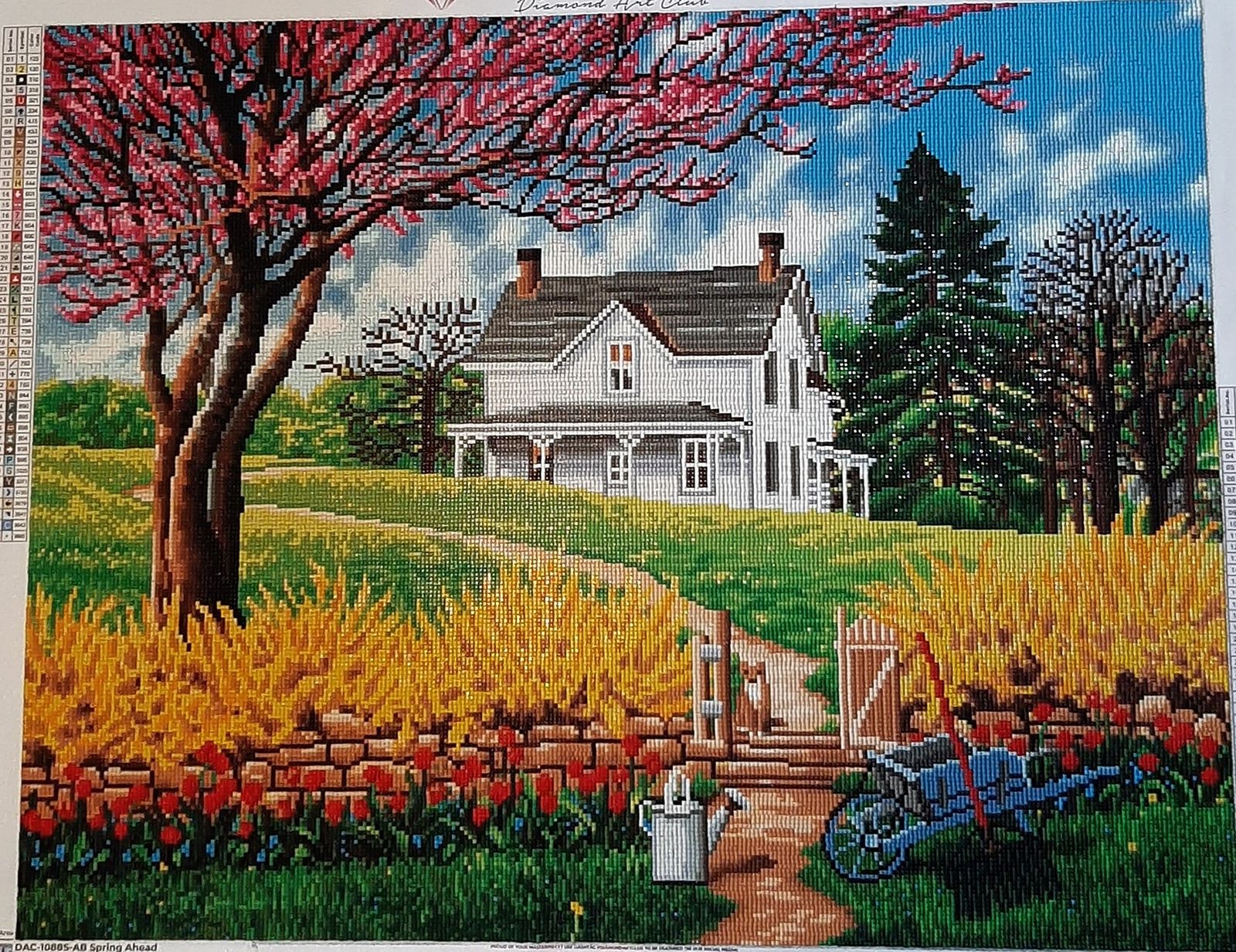 What a beautiful Diamond painting. It’s clear and the colors stand out in the trees and flowers. It reminds me of Virginia. Great rendering.