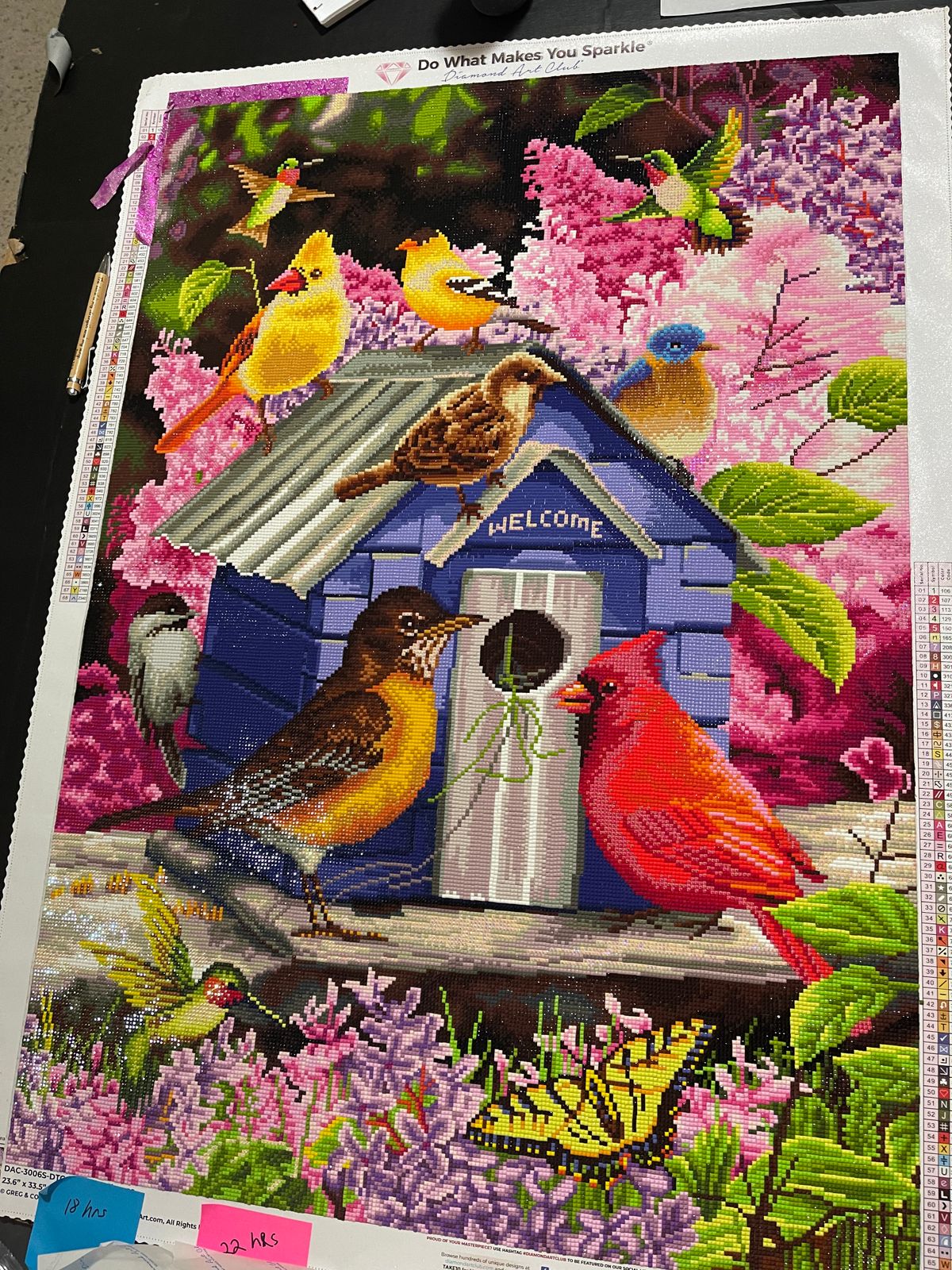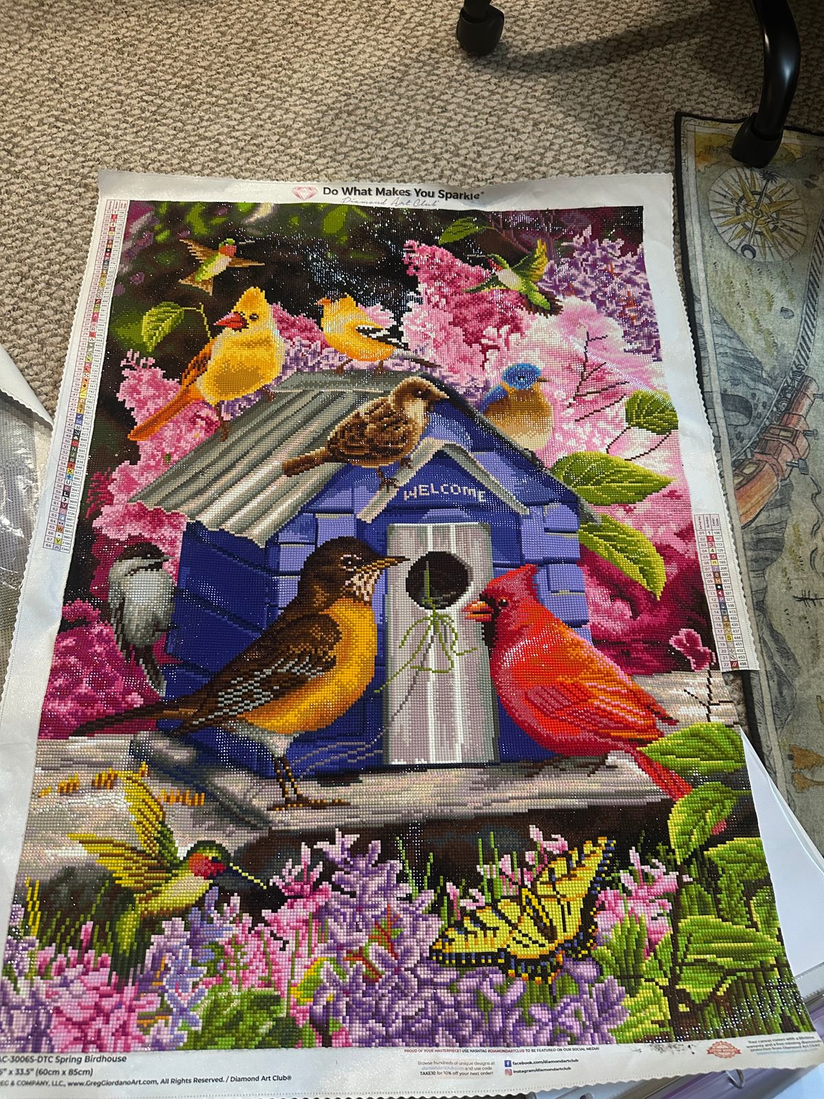 I absolutely loved working on the Spring Birdhouse diamond painting! The colors are bright, cheerful, and really capture the fresh feeling of springtime. The design is detailed but not overwhelming, making it both relaxing and fun to complete.