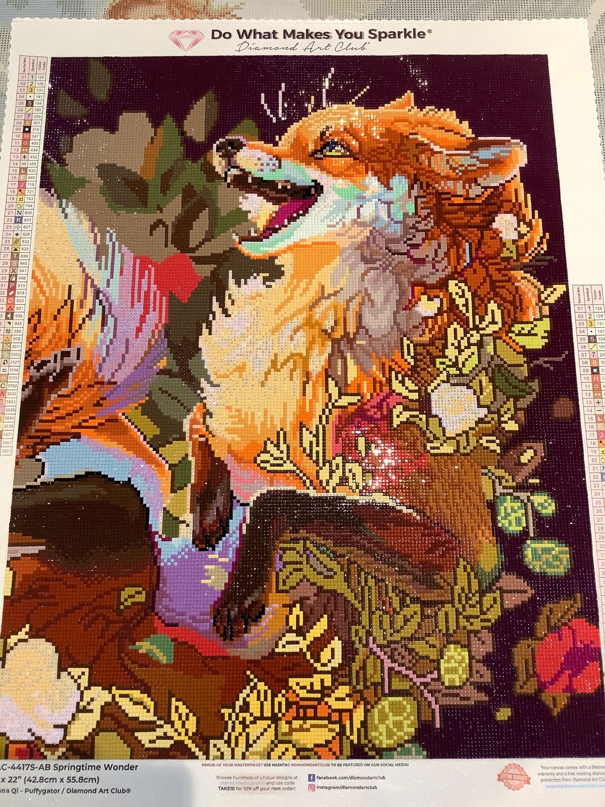 Gorgeous diamond painting of a fox, one of my favourite animals! This was a joy to work on and came together fairly quickly with lots of colour blocking and only a small amount of confetti. I love the final result!