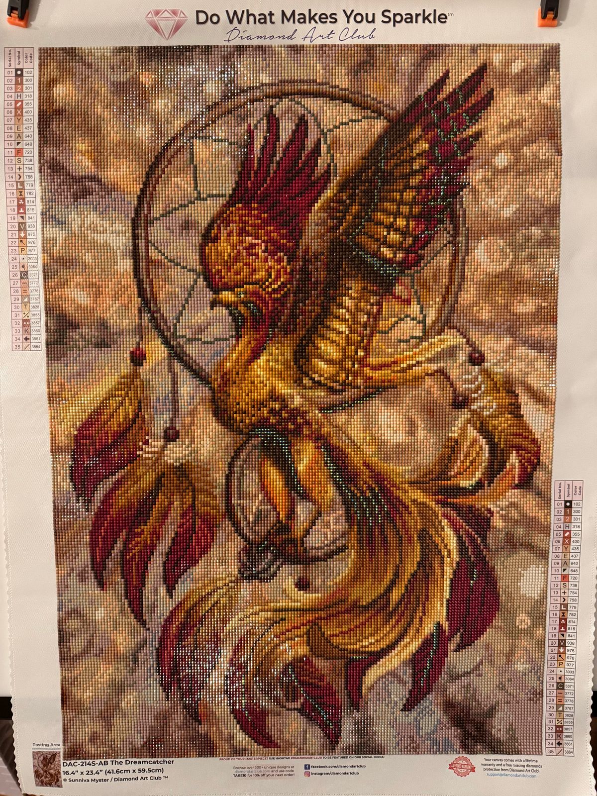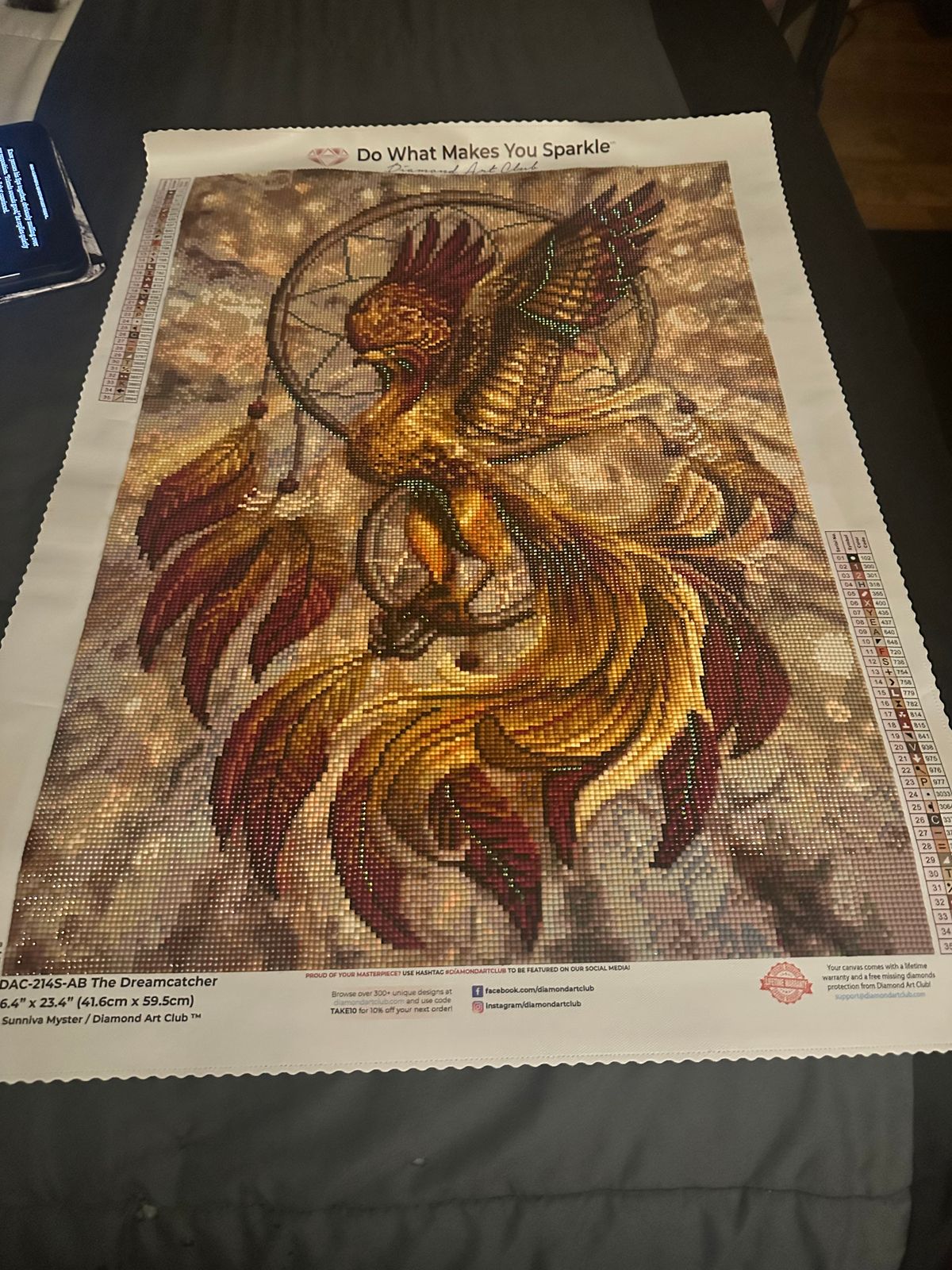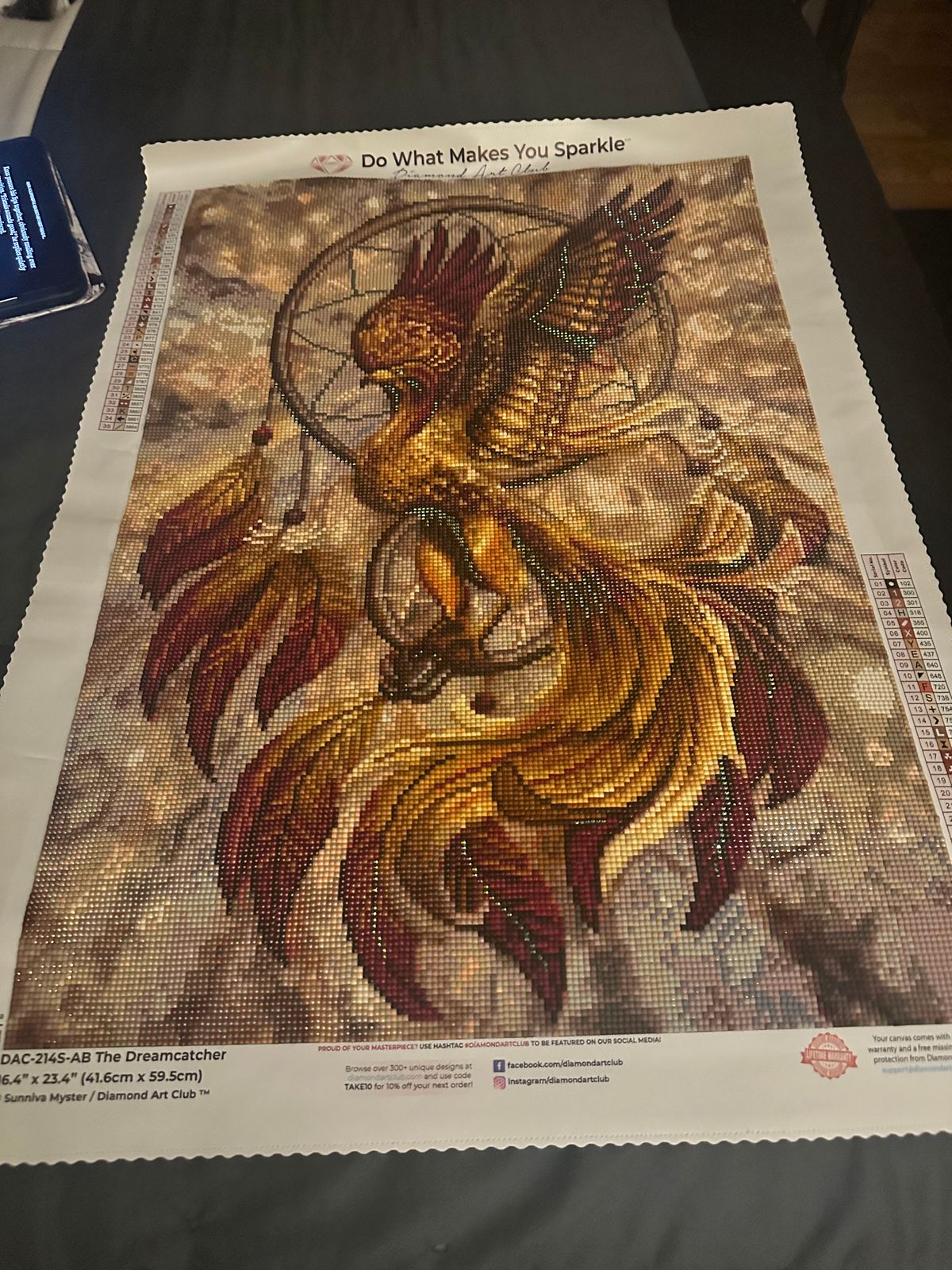 This is an amazing painting. The colors and image are so beautiful. This was my first square painting, so it took me a little longer to compete. I gave the finished painting as a gift. I liked it so much I bought another one for myself.