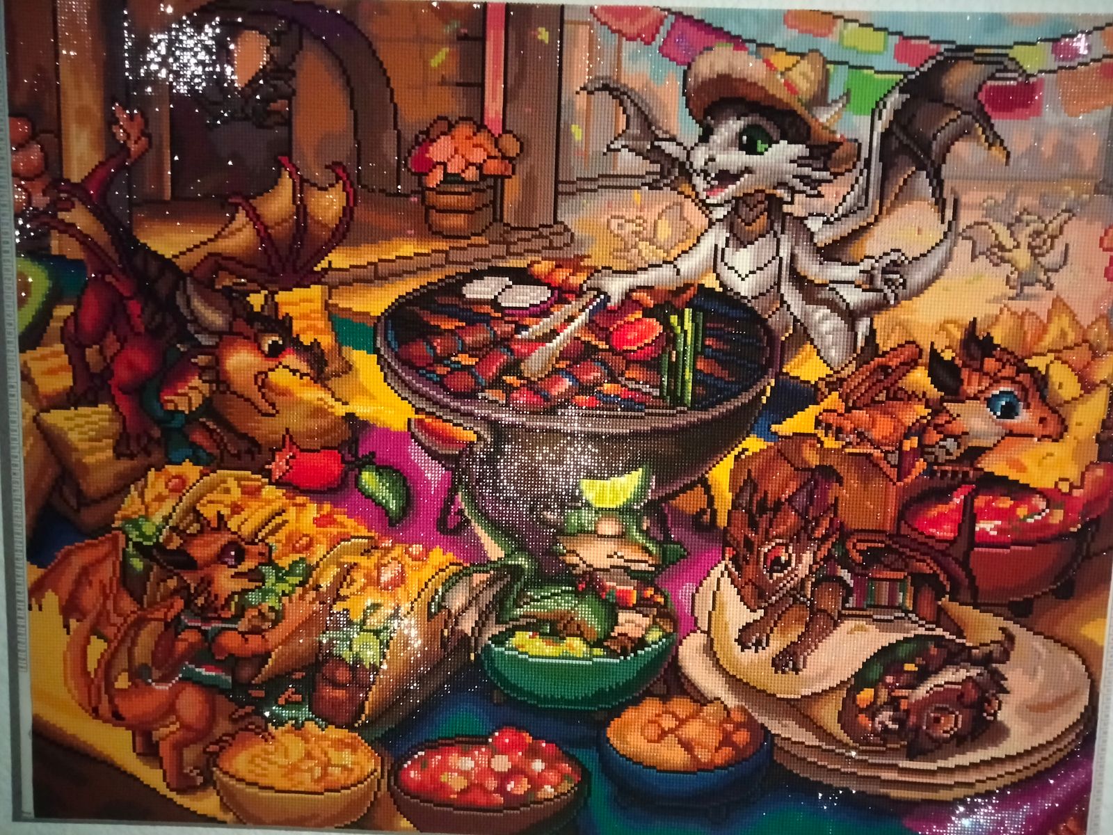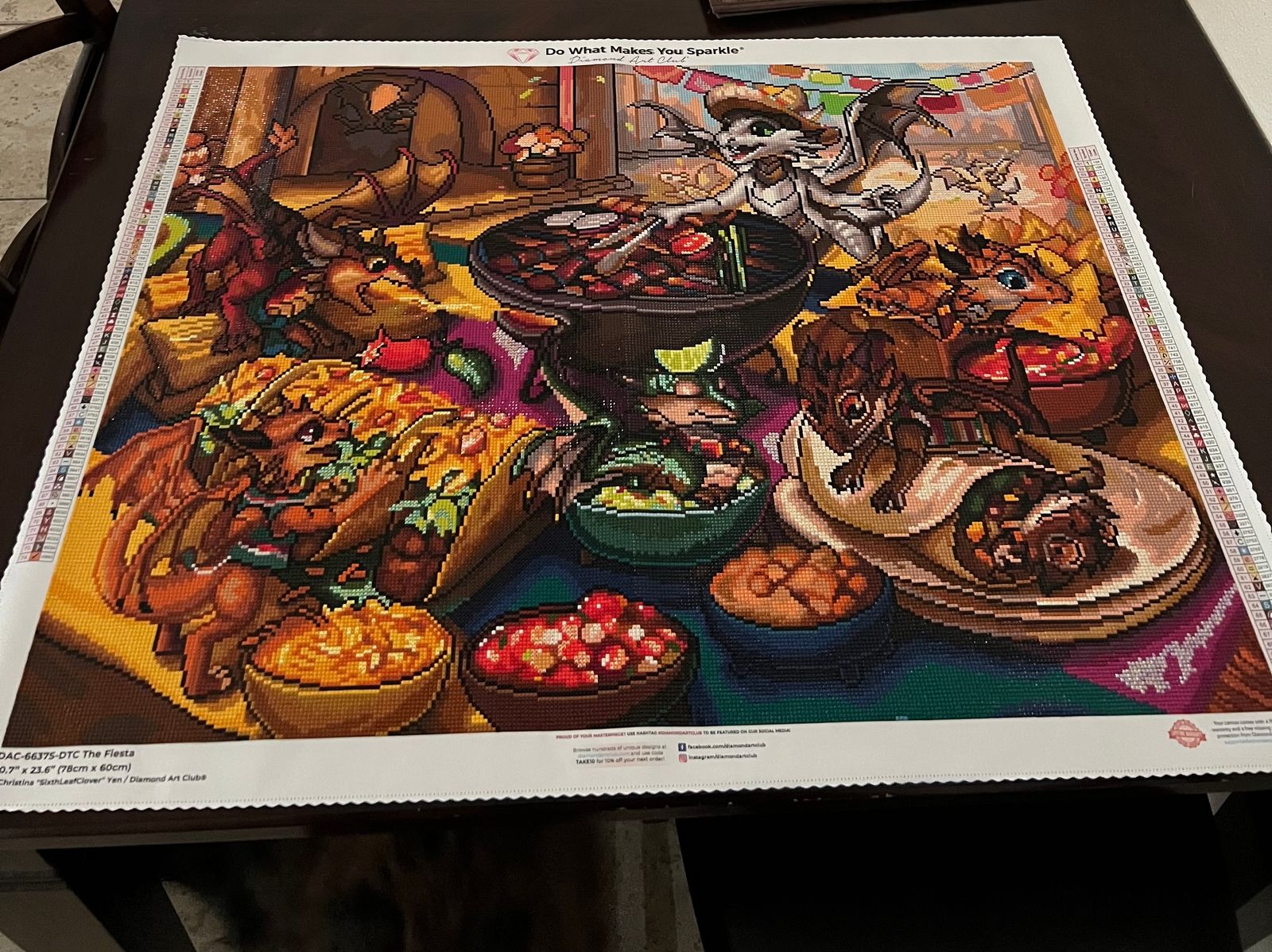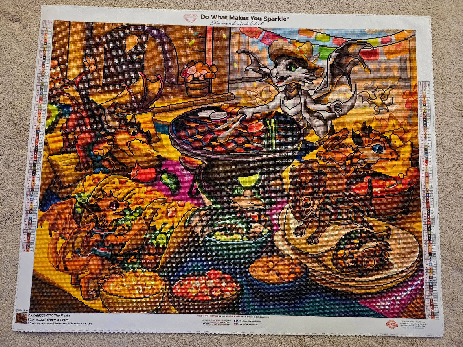 This kit is so festive! All of the vibrant colors really pop and the special diamonds were charted beautifully, especially the ABs. All of the details were rendered very clearly and the dragons look absolutely adorable. I recommend this kit to anyone who is a fan of dragons and Mexican food!