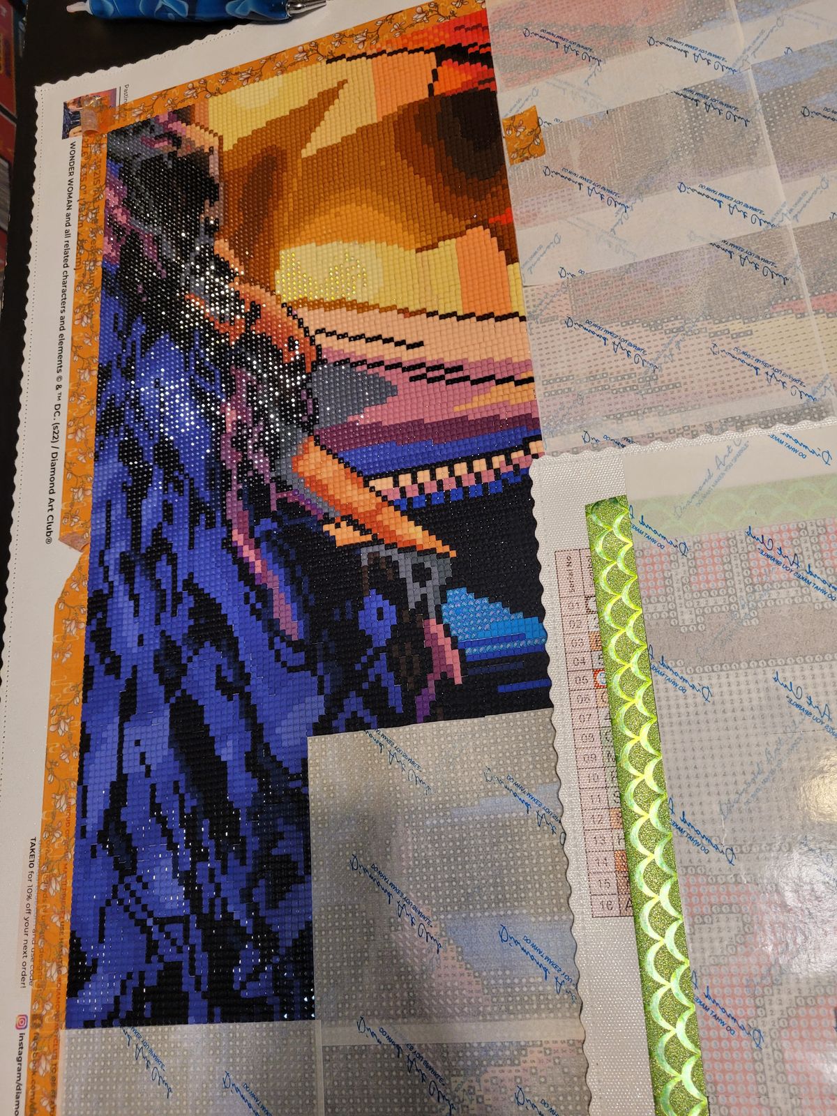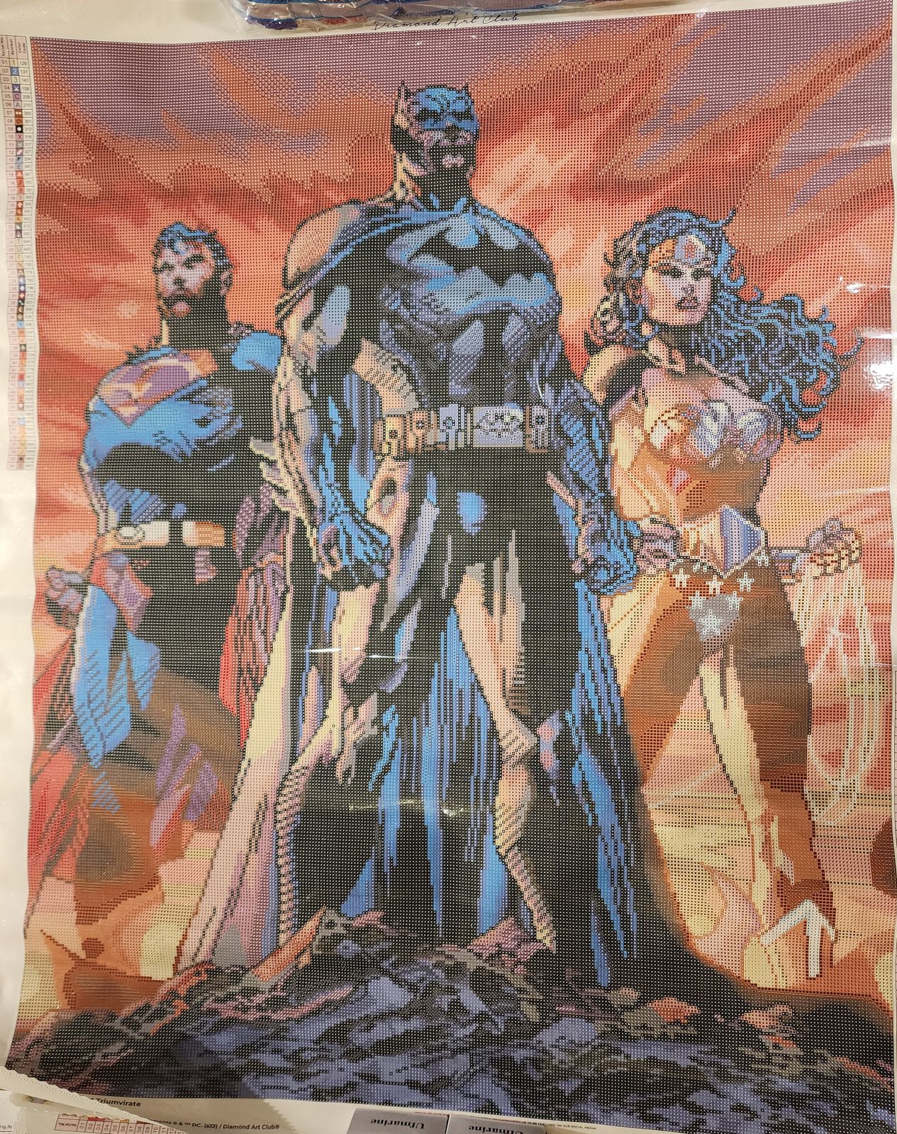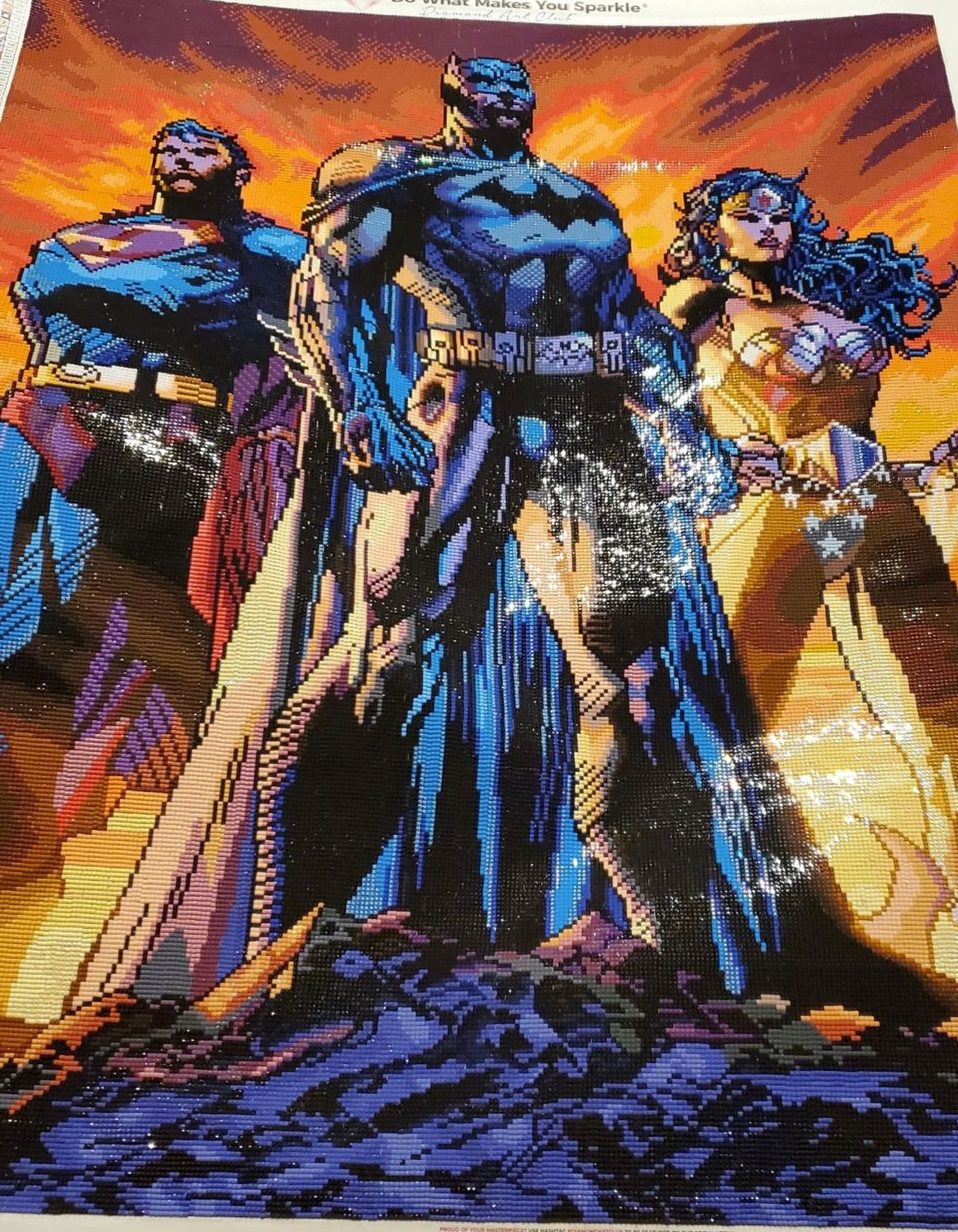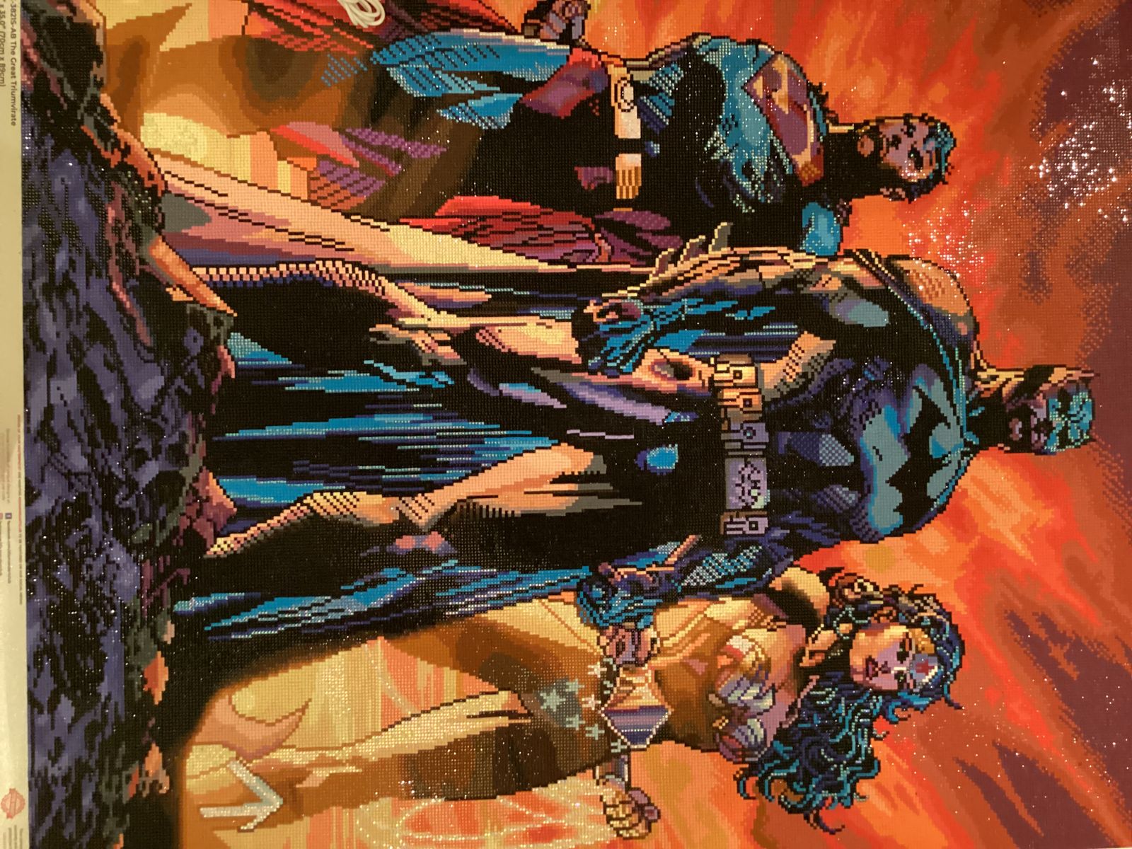 2 months later, and the first DAC I ever started is finally finished! I completed a different, smaller kit before this, but this one was the first one I've started. It truly sparkles. The most confetti heavy areas were in Wonder Woman's hair, but this was so much fun to complete.