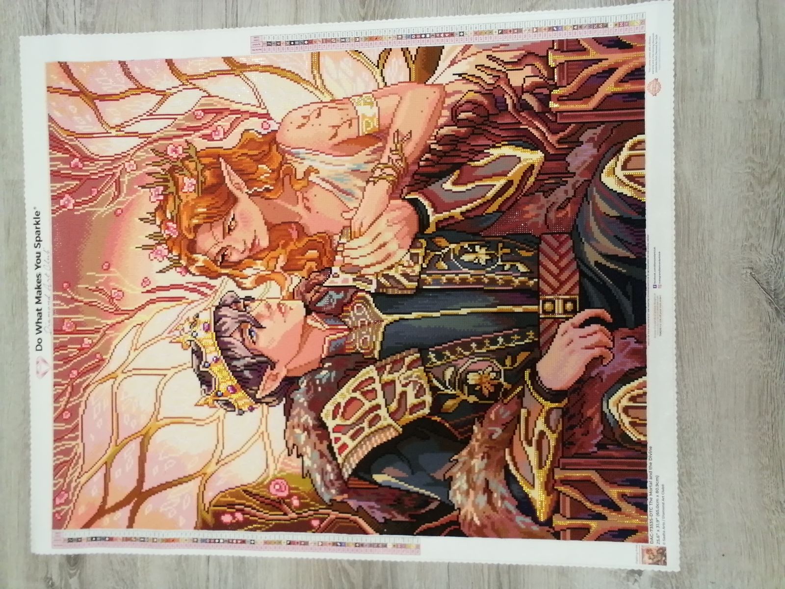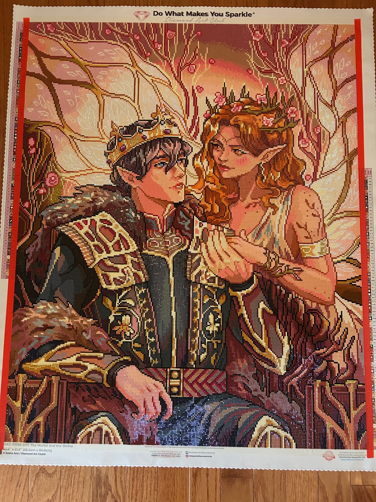 When I first saw this diamond art painting, I knew that I had to have it. I love reading romantasy books especially when there's an opposites trope and this painting depicts that perfectly. I love all the special drills in his crown and the electro drills throughout the canvas. This painting was a joy to work on it.