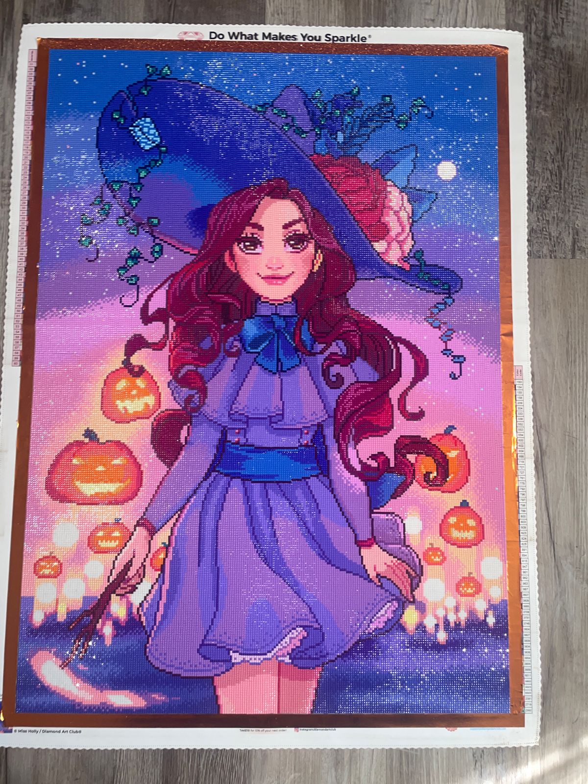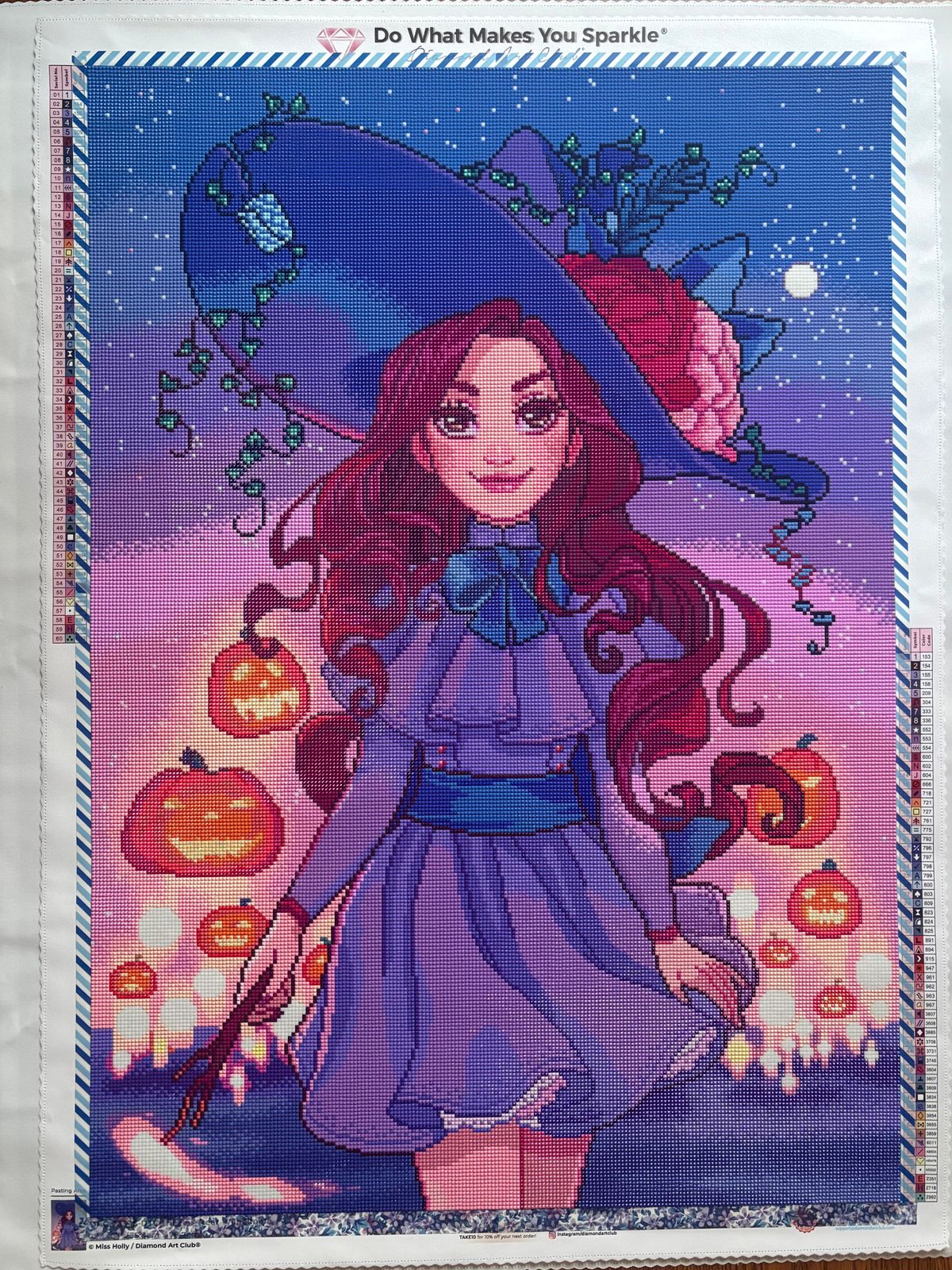 I absolutely loved working on Trick or Treat Wilhemina by Miss Holly! The colors are so vibrant and the rendering is perfect — every little detail of Wilhemina came to life as I was placing drills. Diamond Art Club’s quality never disappoints: the canvas was soft and clear to read, the drills were sparkly and consistent, and there was more than enough to finish without stress.