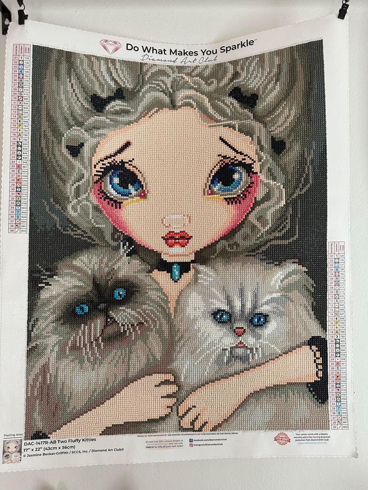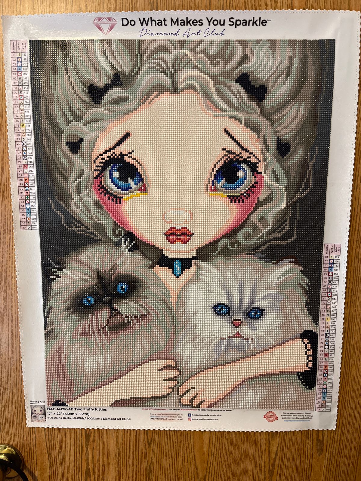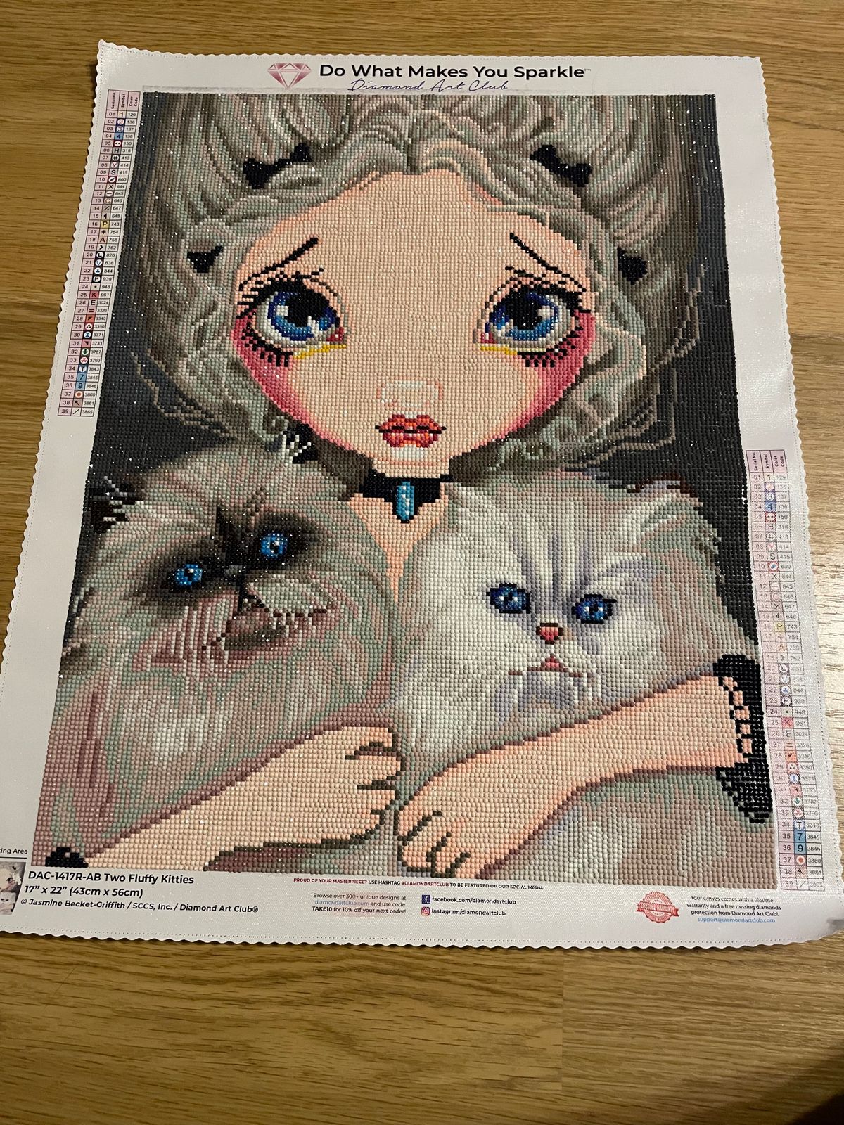 I've never completed a painting like this - the cutesy, cartoony type. This one in particular (Two Fluffy Kitties by Jasmine Becket-Griffith) is so much more colourful than the box picture suggests. It's so fun! I'll likely finish it pretty quickly, being round and small-ish.