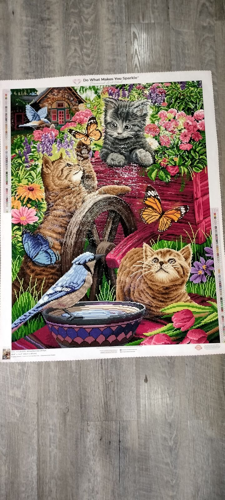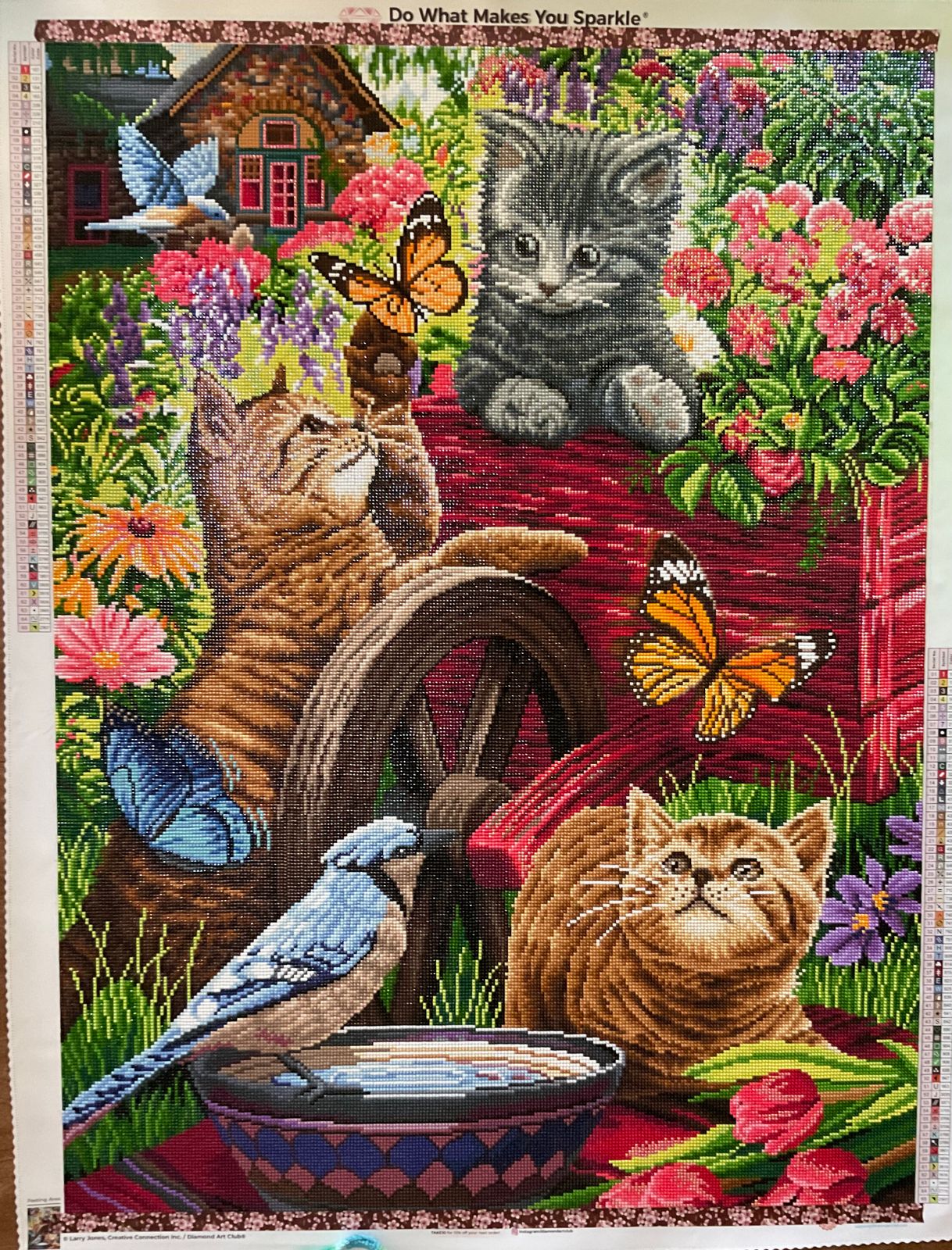 Everything about this is beautiful, bright and so totally adorable. The rendering is amazing, the expressions on those little kitties faces is gorgeous and so lifelike. The birds, butterflies and flowers are just as impressive. I thoroughly loved working on this kit. Its proudly on display and is one of my favourites.