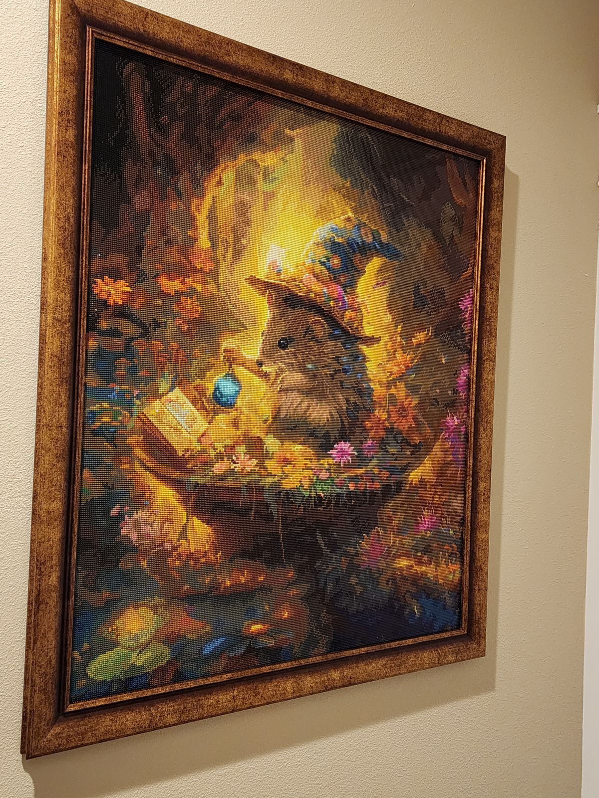 Finished, framed, and hanging. Great canvas and drill quality as usual - loved the rich, earthy colors.