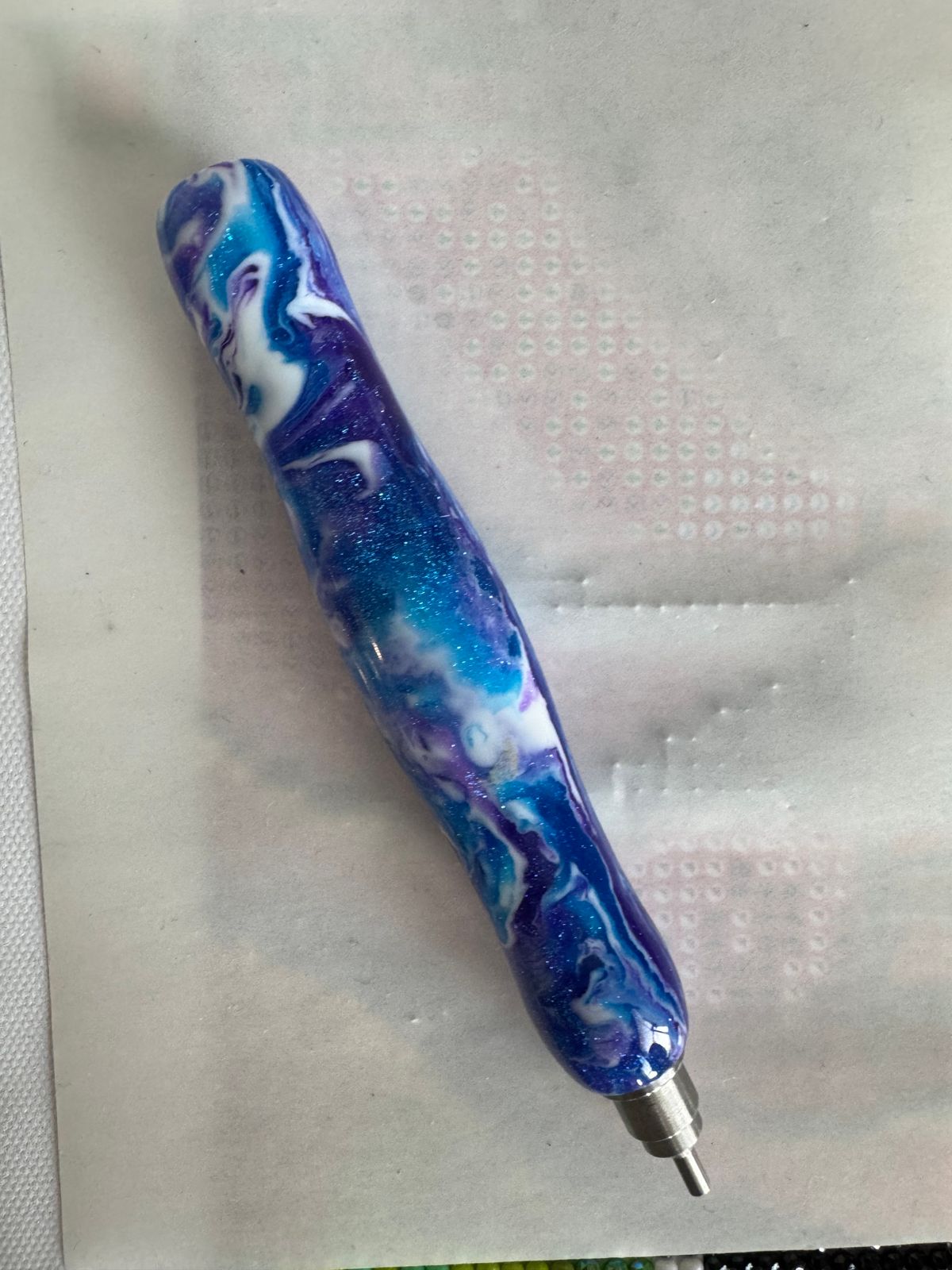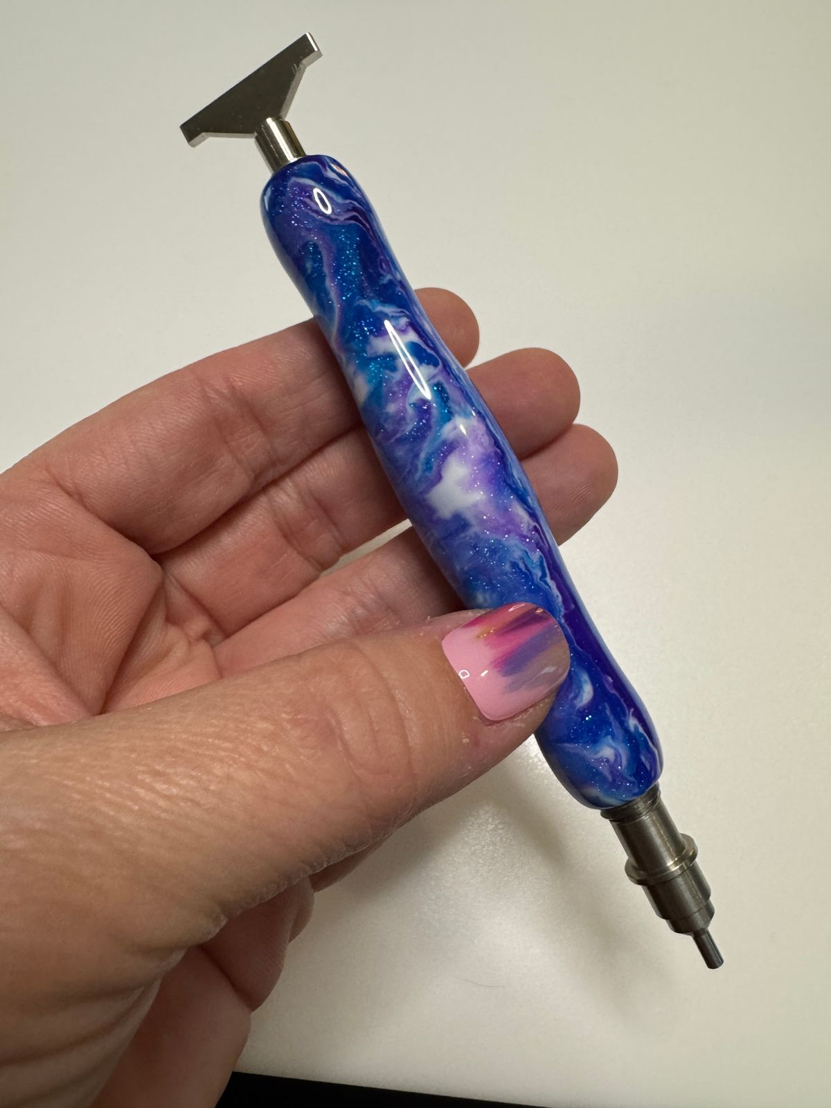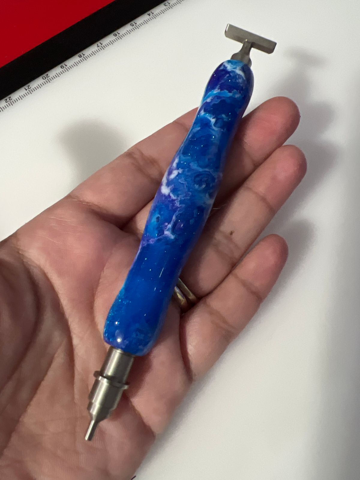 Add a touch of flair to your diamond painting with the Twist And Pick Premium Pen - Cyan Calypso Swirl. Designed to stand out with its vibrant swirls, this pen delivers both style and precision, featuring our Forever Stainless Steel Single Placer Tip for Twist & Pick Pens pre-equipped on one end. This premium, refillable tip offers unmatched precision and durability, ensuring perfect gem placement with every use. The other end of the pen is left empty and is compatible with our range of Twist-On (Threaded) stainless steel applicators, allowing you to customize your setup as needed. Note: This pen is not compatible with regular non-threaded tips. Ergonomically crafted for a comfortable grip, it measures around 9.6 cm (3.8 inches) without the tip, offering excellent control. Built for long-lasting performance, this pen will upgrade your diamond painting experience.