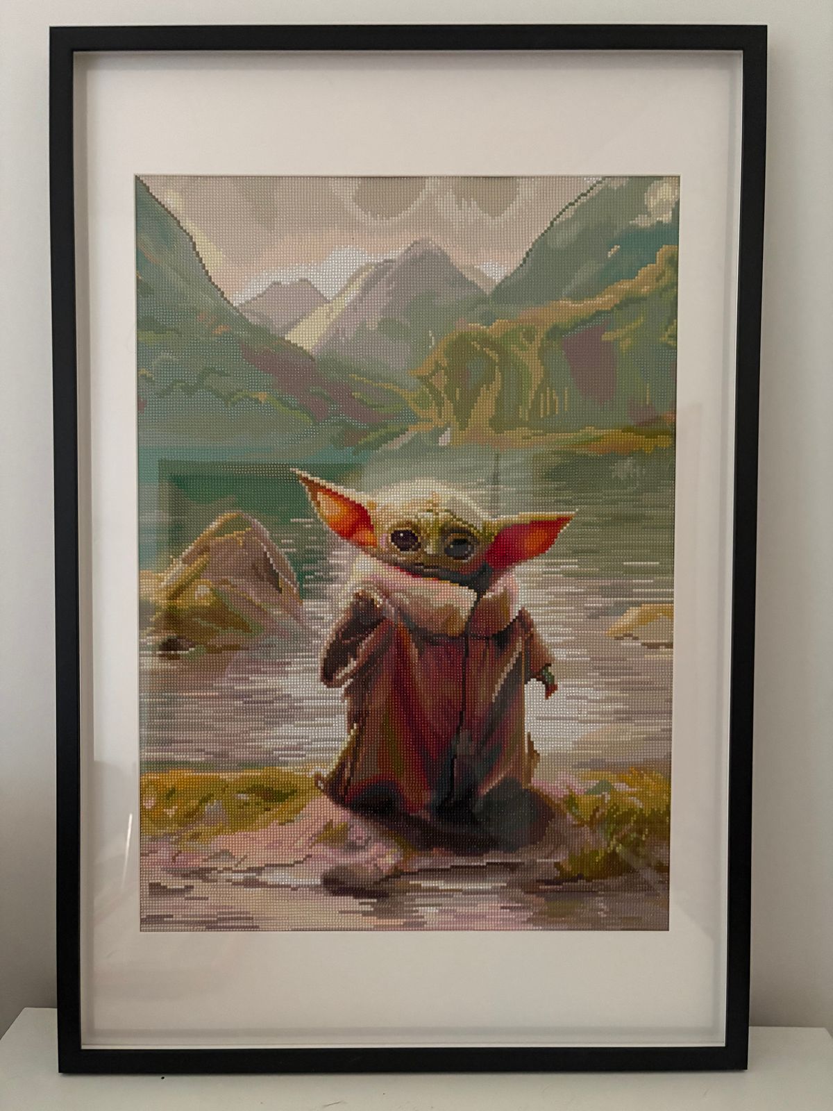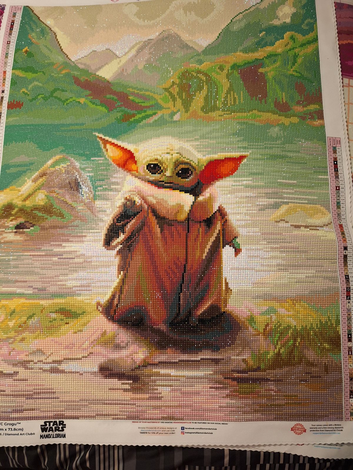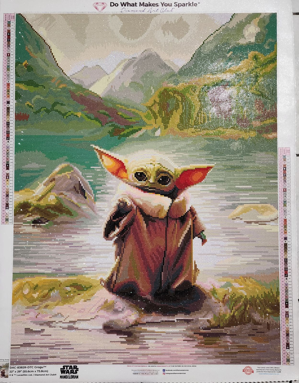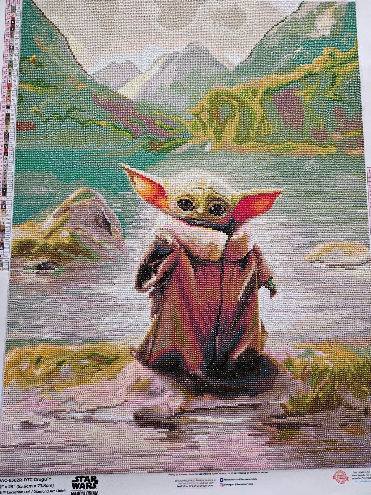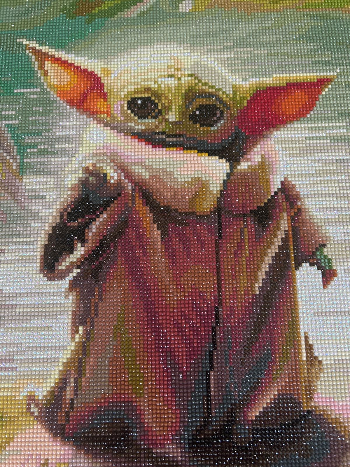 This diamond art painting of Grogu is absolutely adorable! The design really captures his big, curious eyes and sweet little expression, which makes working on it such a joy. The colors are vibrant and well-coordinated, bringing the character to life as the canvas fills in.