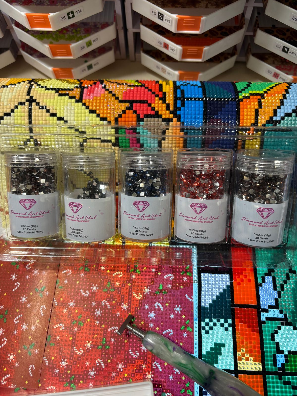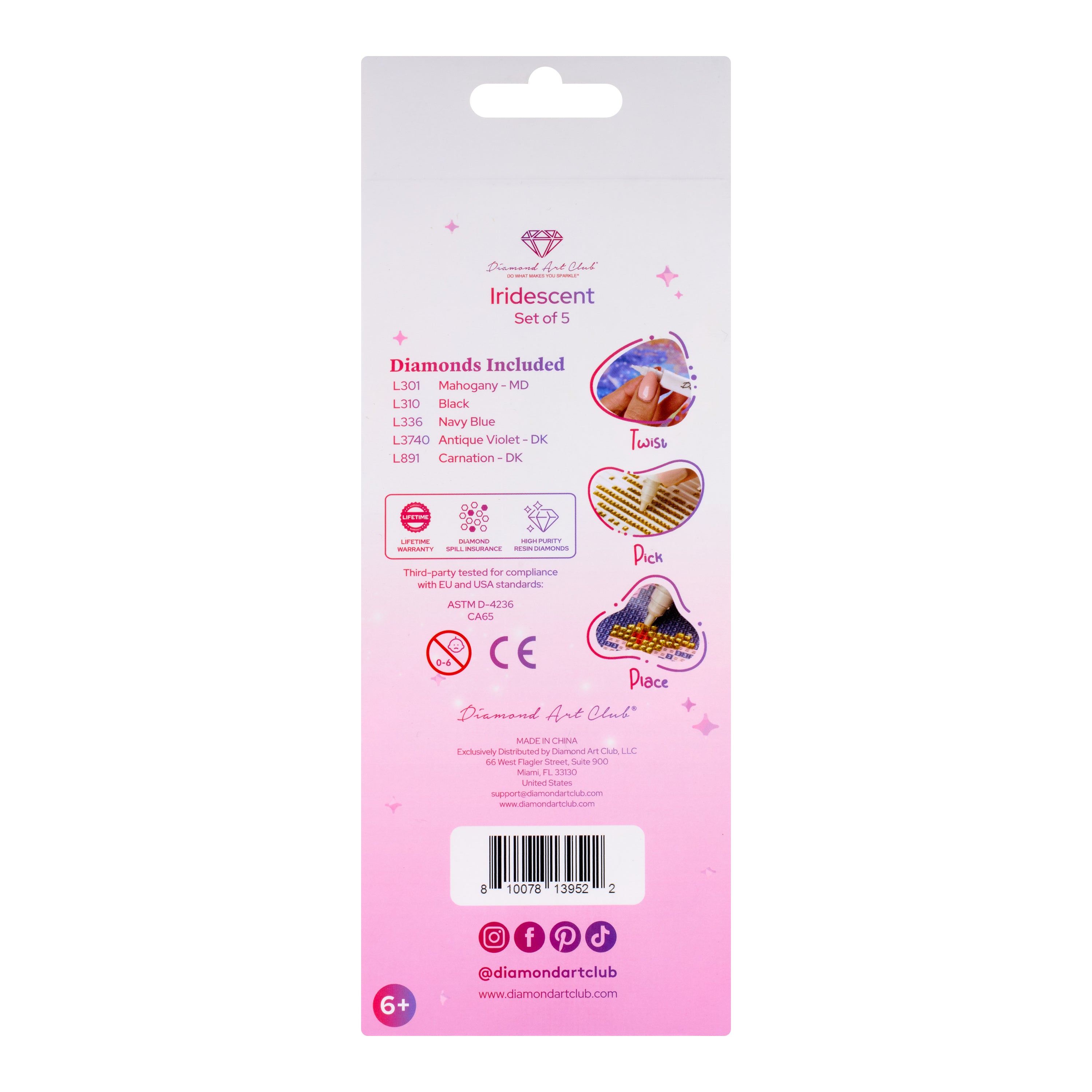 Add a stunning, magical glow to your diamond painting projects with this set of 5 jewel-toned Iridescent square drills. Each jar contains 0.63 oz (18g) of our signature 13 or 20-facet resin drills, featuring a semi-transparent, rainbow-colored shimmer that beautifully enhances any design.