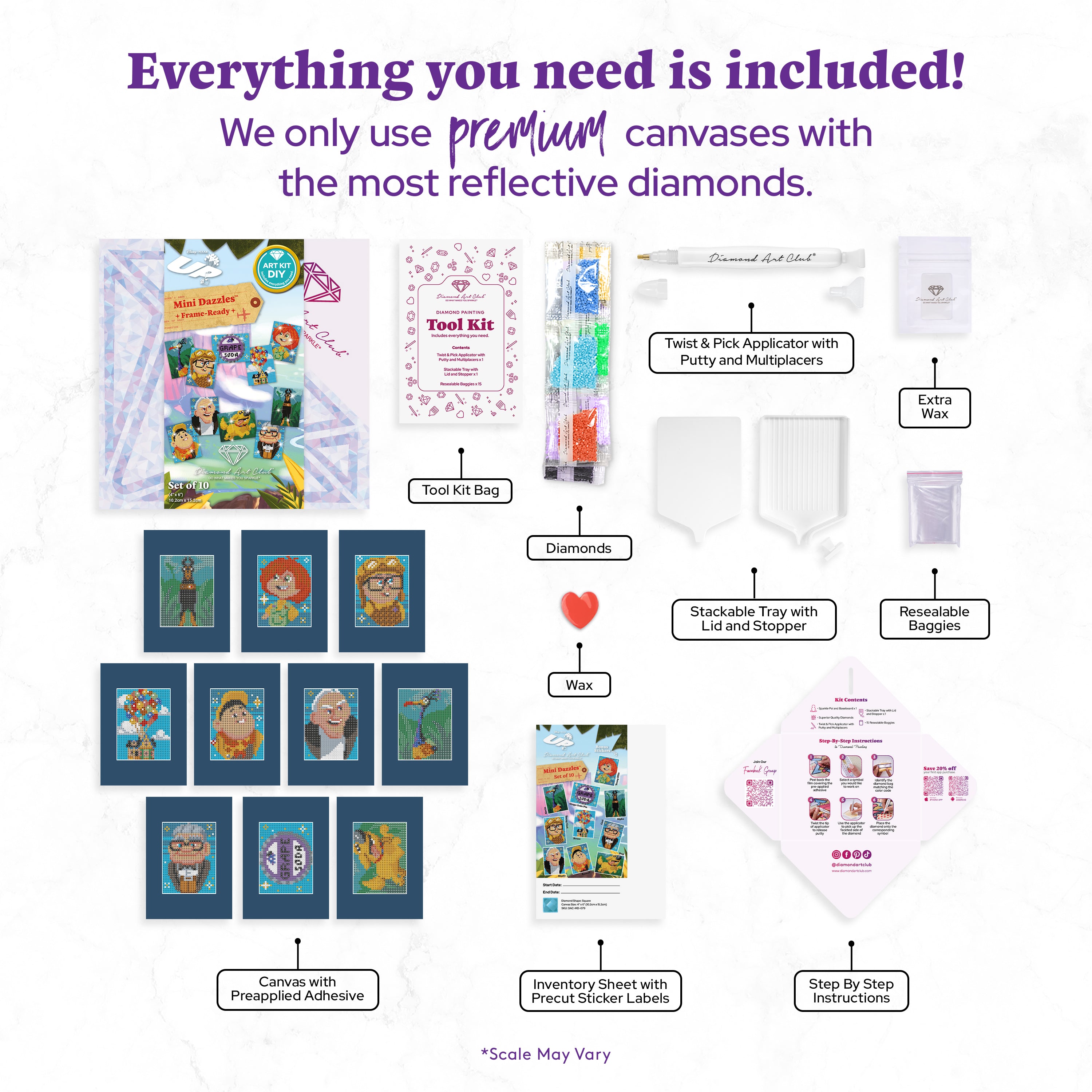 Float into a heartwarming adventure and piece together sparkle-filled moments from a timeless tale with this Up Mini Dazzles™ set. Frame them, gift them, or display them proudly and let every tiny scene lift your spirits sky-high.