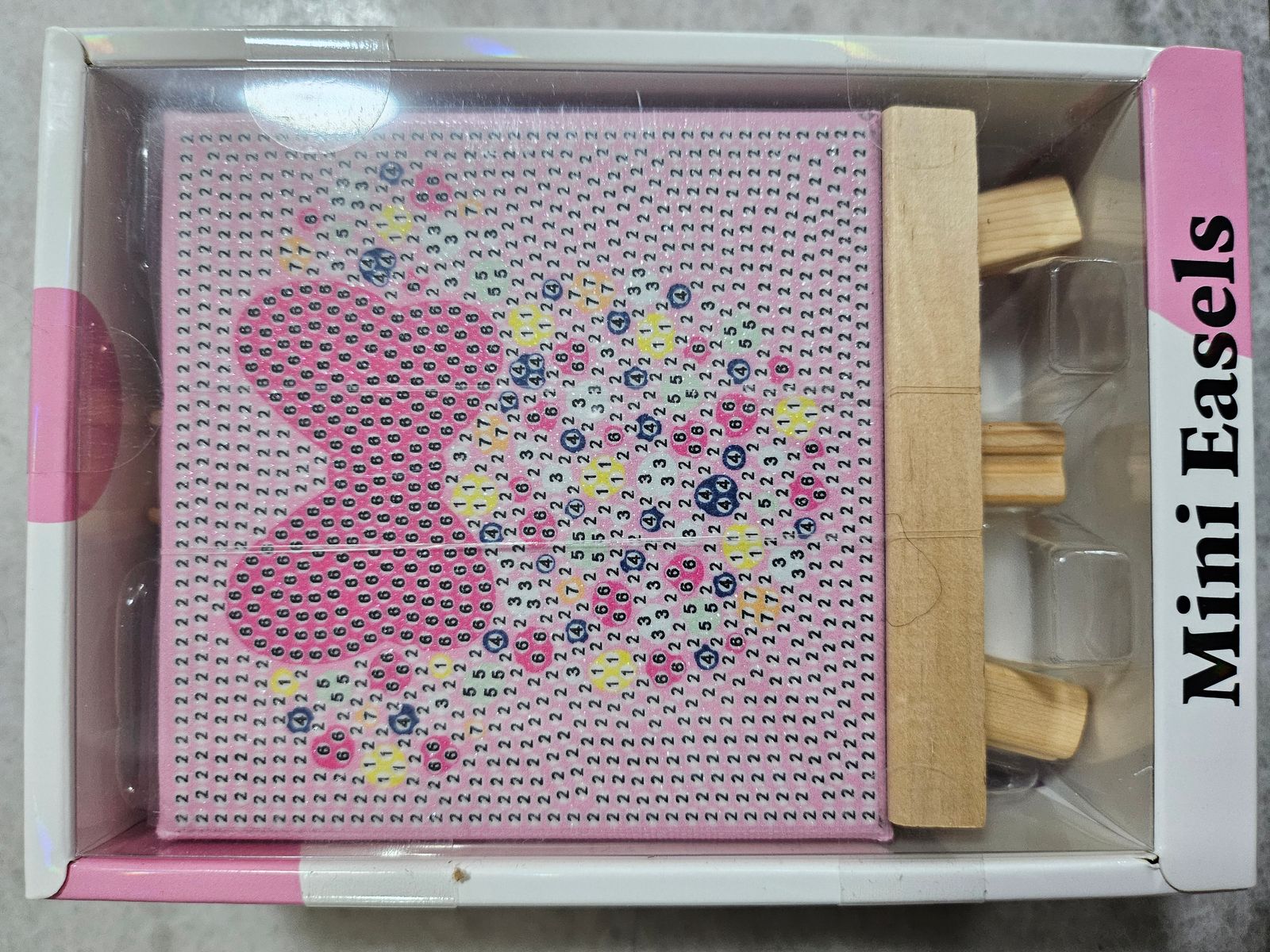 These mini easels are too adorable! They are a nice fun quick project that can be displayed anywhere! It comes with everything you need: a mini tool kit and even the little easel to display your finished work!