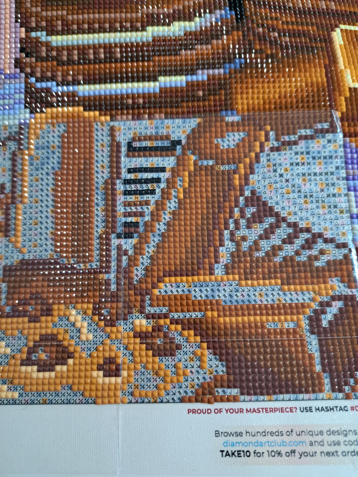 I have been working on this mystery painting for the past 2 months and loving it. Yes it is a big canvas and doing a mystery painting always takes me twice as long. But the square diamonds are fantastic!!