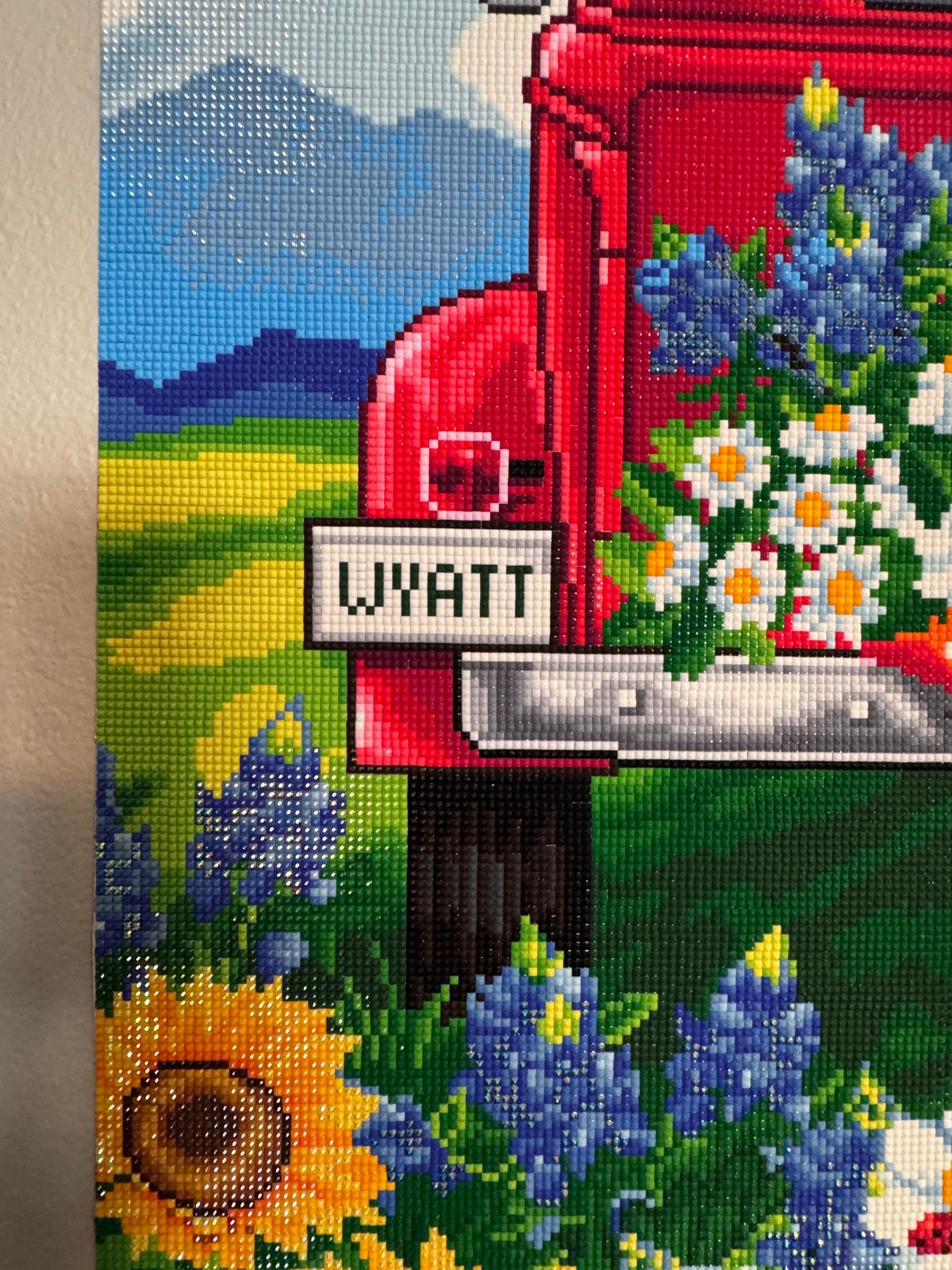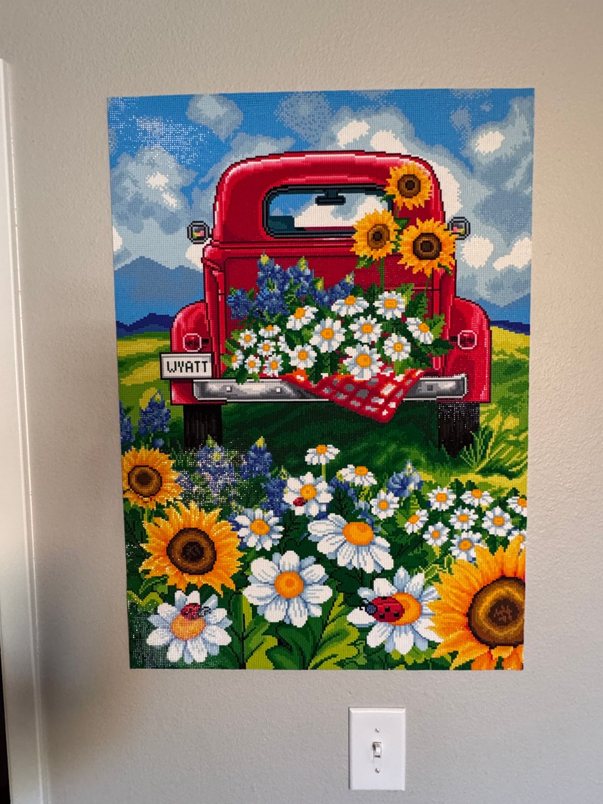 I love this one!!! The colors are so bright and vibrant, and it felt like it went by really fast! And I changed the license plate to personalize it with our name, which was easier than I thought it would be! And now it’s special and such a happy piece of art to look at