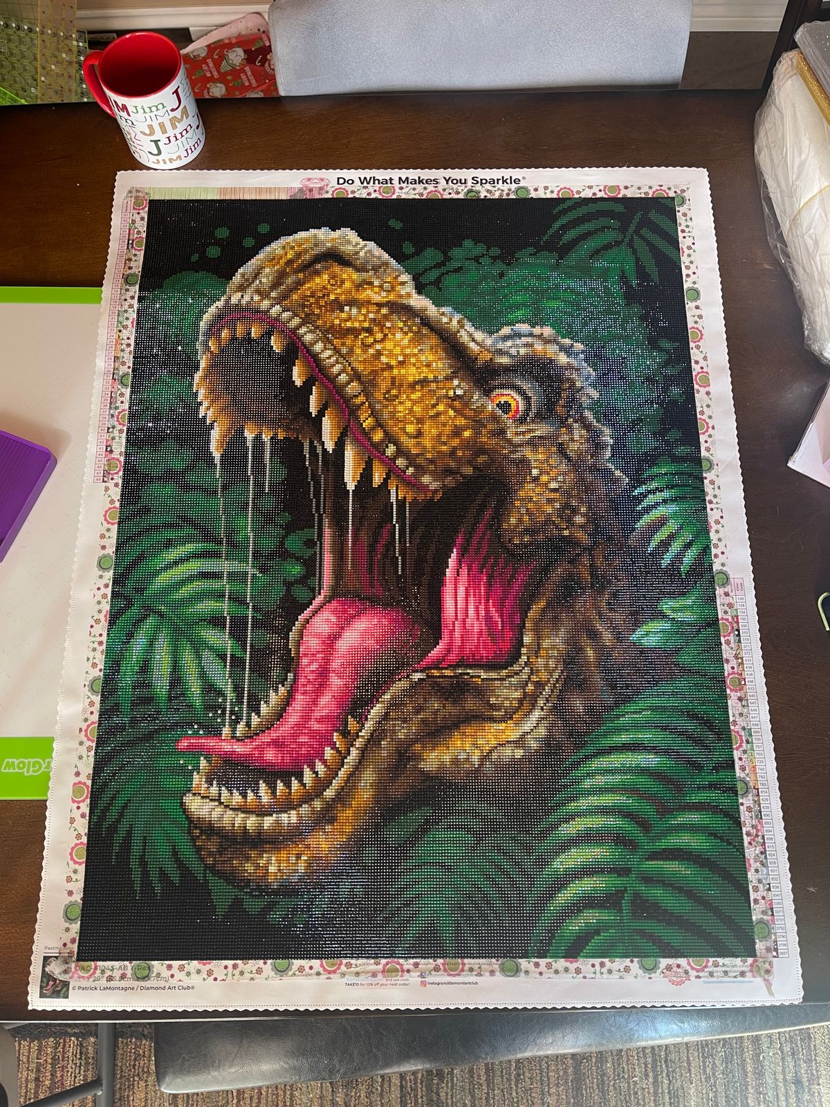 LOVE THIS!!! T-Rex is Sooo COOL!!! And literally jumping out at you!! I bought this to do for my grandson, who had just turned 7 last month! And my daughter, my grandson and her fiance just moved into a new house in Florida, so this way they can hang this in his new room! I also incorporated his name into the painting. Which i was pleasantly surprised how well it came out. Since that was the first time I’ve ever put a name in one of my paintings!!! And im working on this for about 6-7 hours a night! So im hoping to be done in the next couple weeks or so! This painting is beautiful and I cannot wait til it is done, framed and seeing my grandson’s face as they hang it on his wall!!