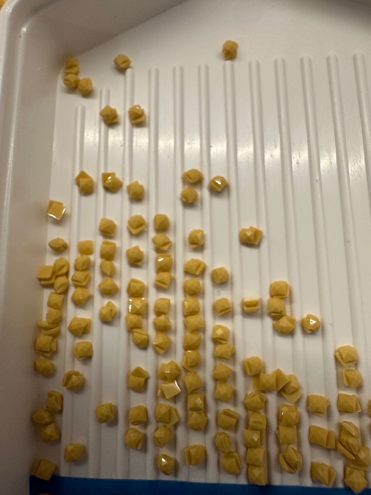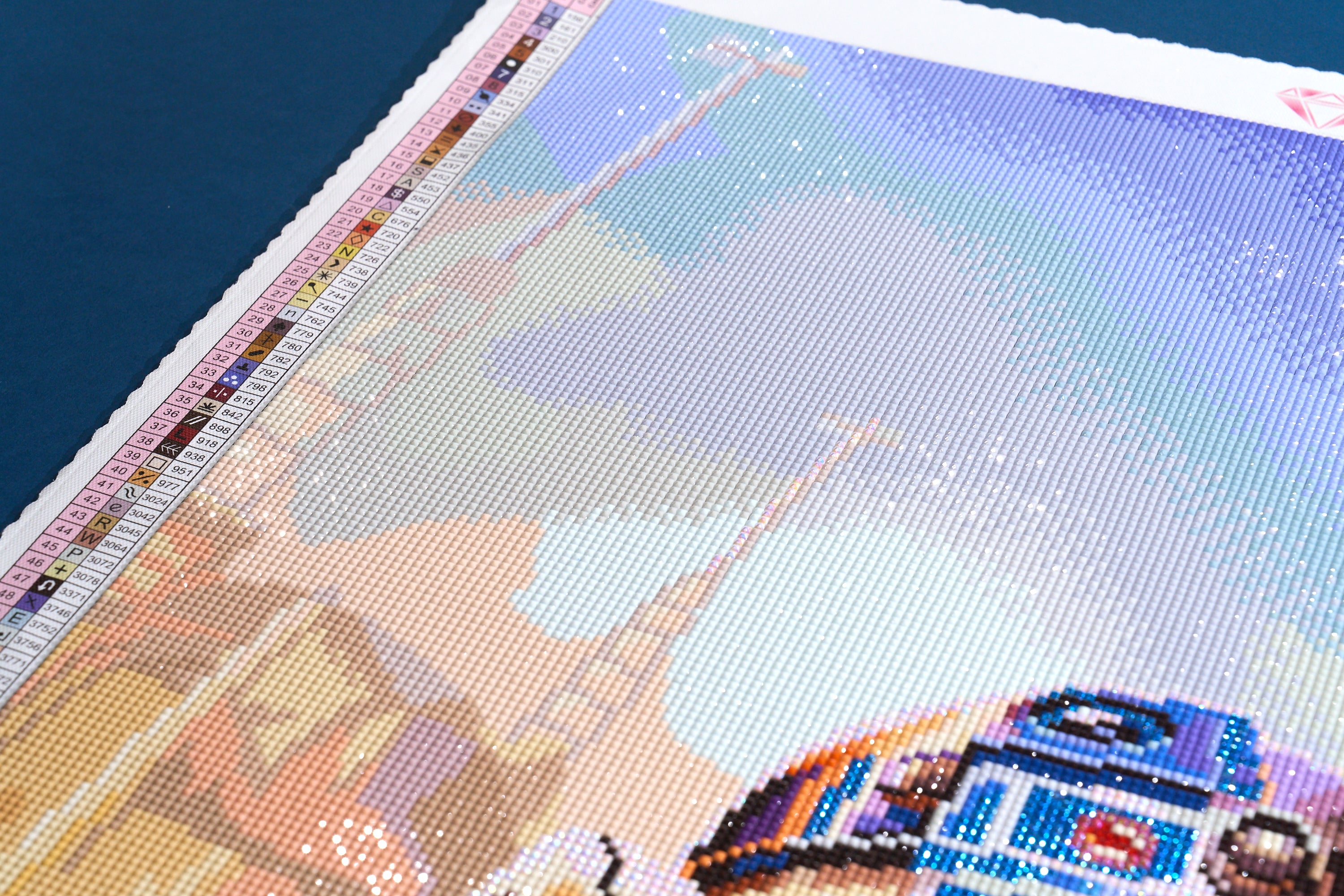I experienced two issues with this canvas. Firstly, the stickers chart did a double up on colours 550-815, not an issue if you sort by symbol but very problematic for those who sort by number (will probably be fixed on restock). The second issue was with colour 676 - a lot of the drills were stuck together and not because of static. It was very difficult and time consuming to pull them apart, making this kit less pleasurable to do than usual. Otherwise, it had great rendering and colours and I loved the final outcome but can't give 5 stars due to the above issues.