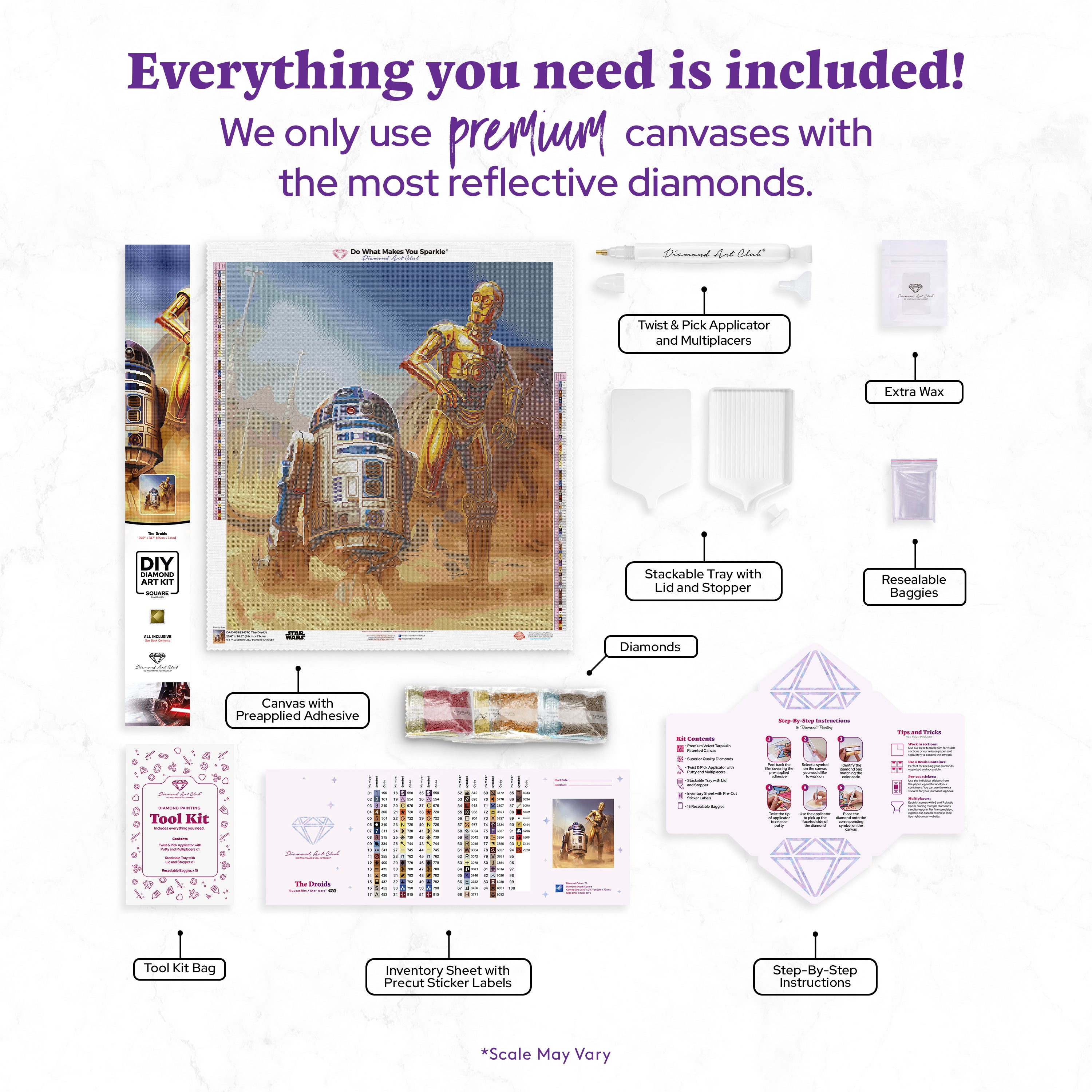 Diamond Painting The Droids 25.6" x 28.7" (65cm x 73cm) / Square with 78 Colors including 2 ABs and 2 Electro Diamond and 1 Iridescent Diamond and 2 Fairy Dust Diamonds / 76,473