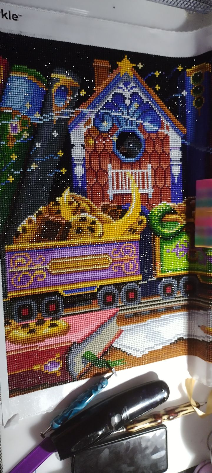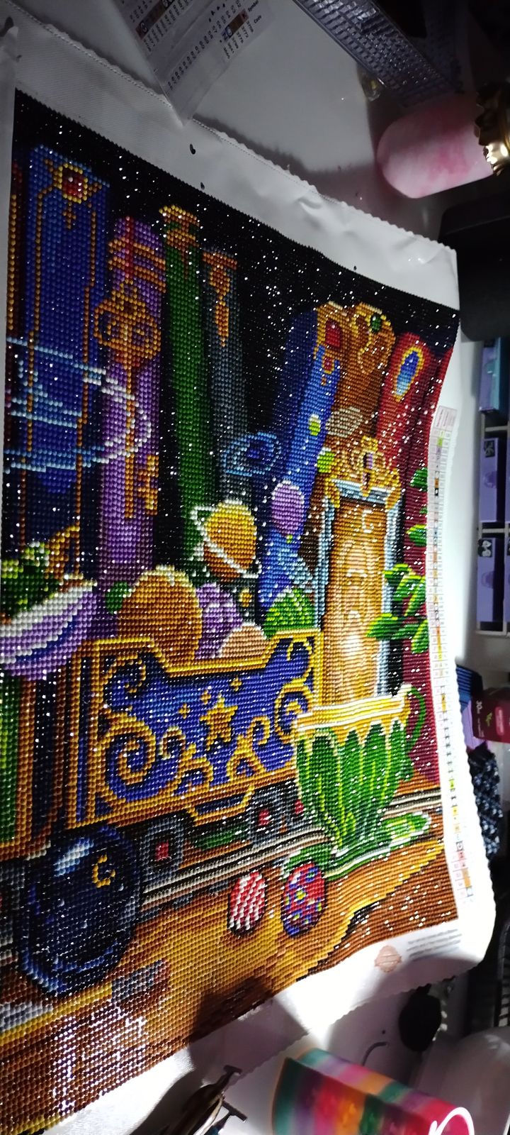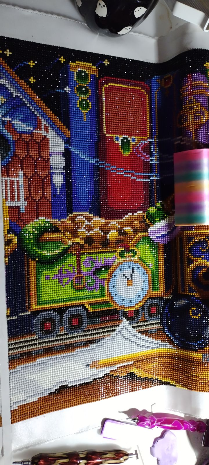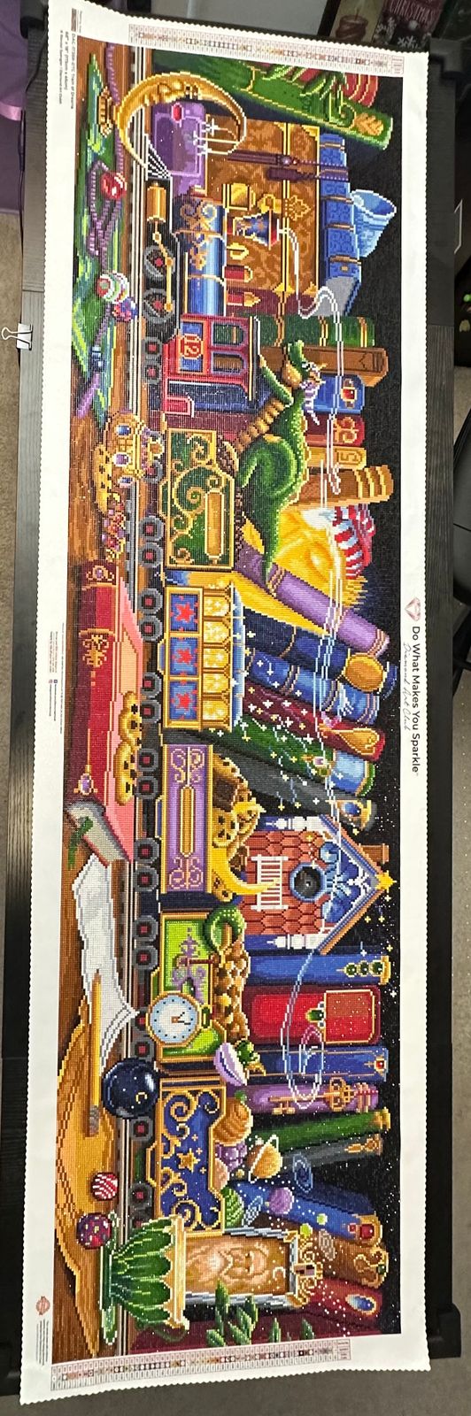 This was one of the first canvases that I bought from DAC and while it was an older canvas it does NOT disappoint. I had so much fun working on this one with the beautiful colors. It is a huge canvas (wider than I a tall) and took me quite a while to finish but I loved ever section I worked on . The was something new in every section…a marble a book, a train when, the moon, another part of a dragon, etc. you won’t regret getting this canvas.