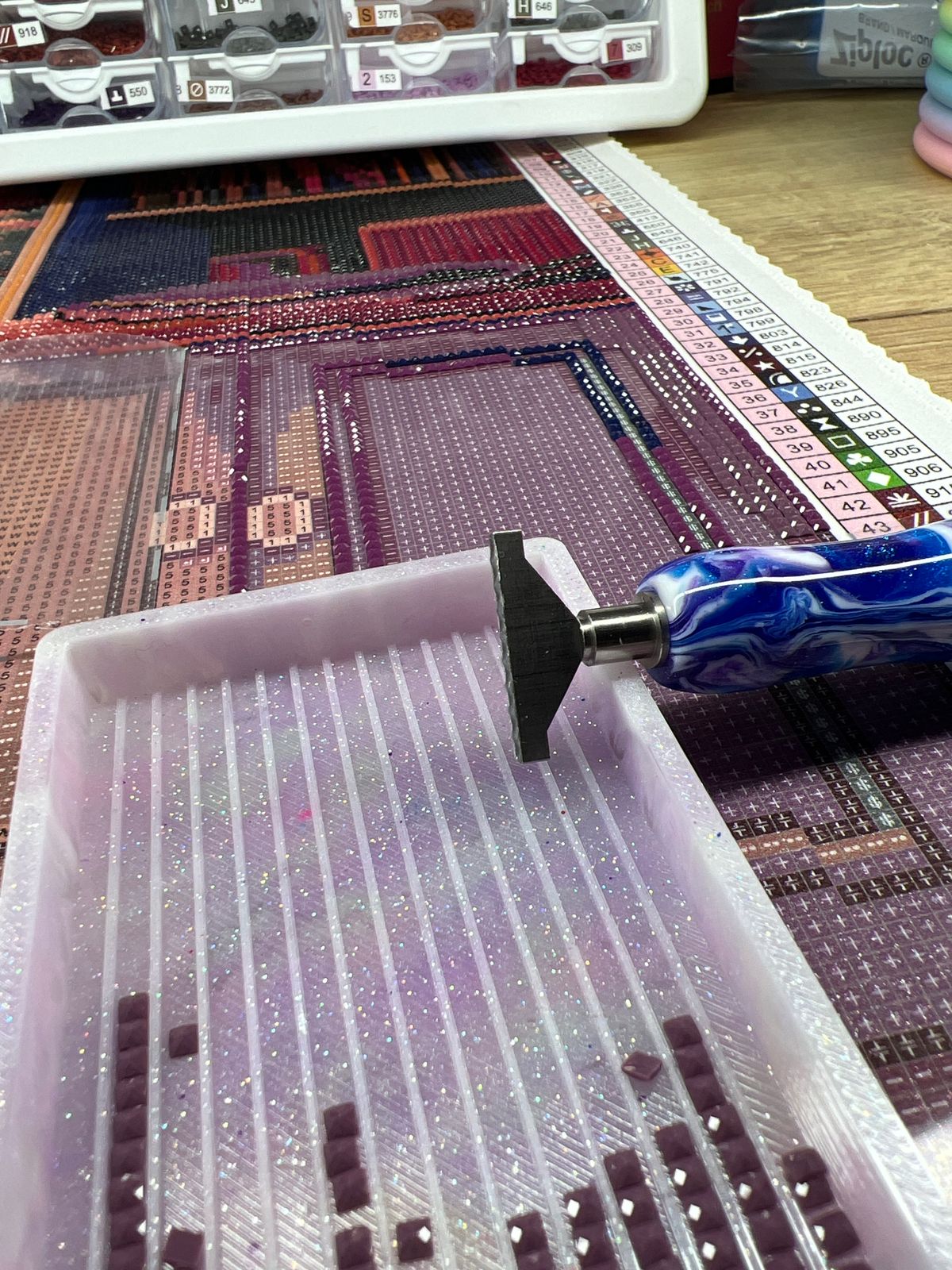 Please note: This multiplacer fits only Diamond Art Club’s Twist-On Premium Drill Pens, Premium Twist and Pick Pens, and Twist-On Range Pens, but is not compatible with the free basic white Twist and Pick pens included with every kit, or with our older premium pens that do not have threaded tips.