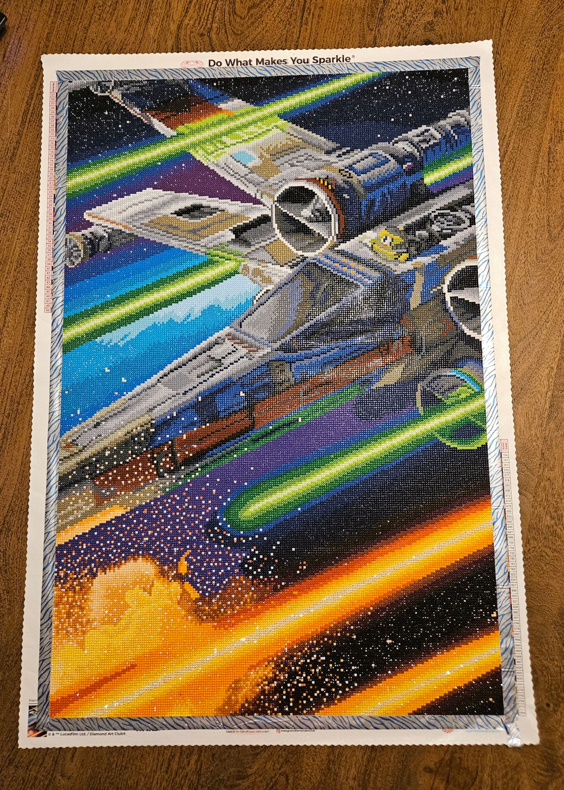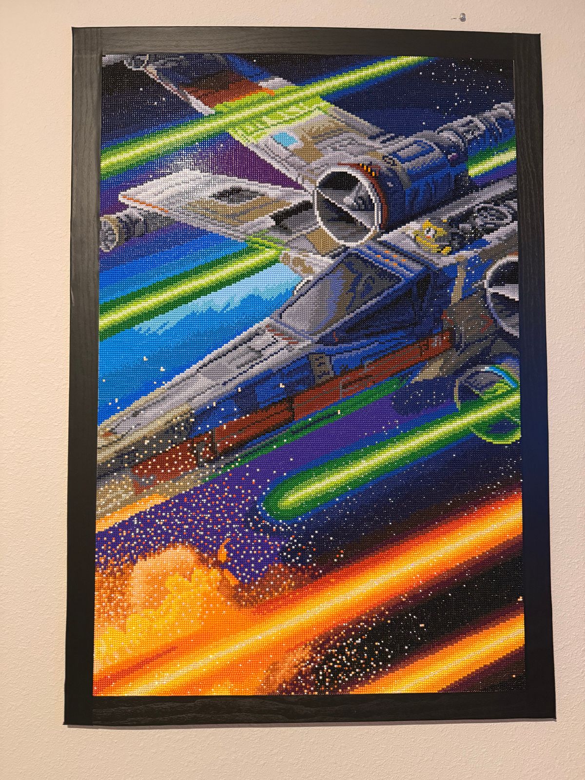This was a great introduction to diamond art painting. It is hanging in my son’s room now and he loves it. I love how it is Star Wars but not people. It’s just a great action painting.