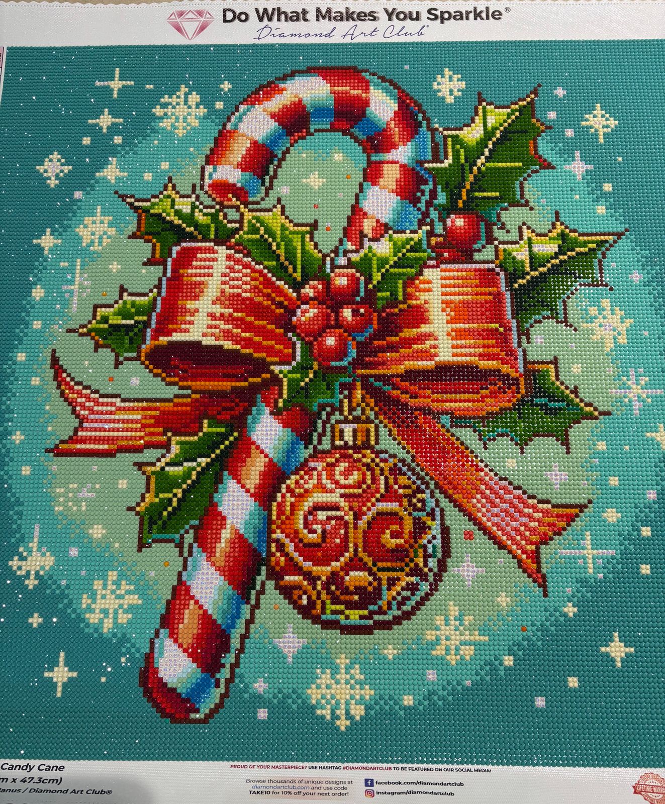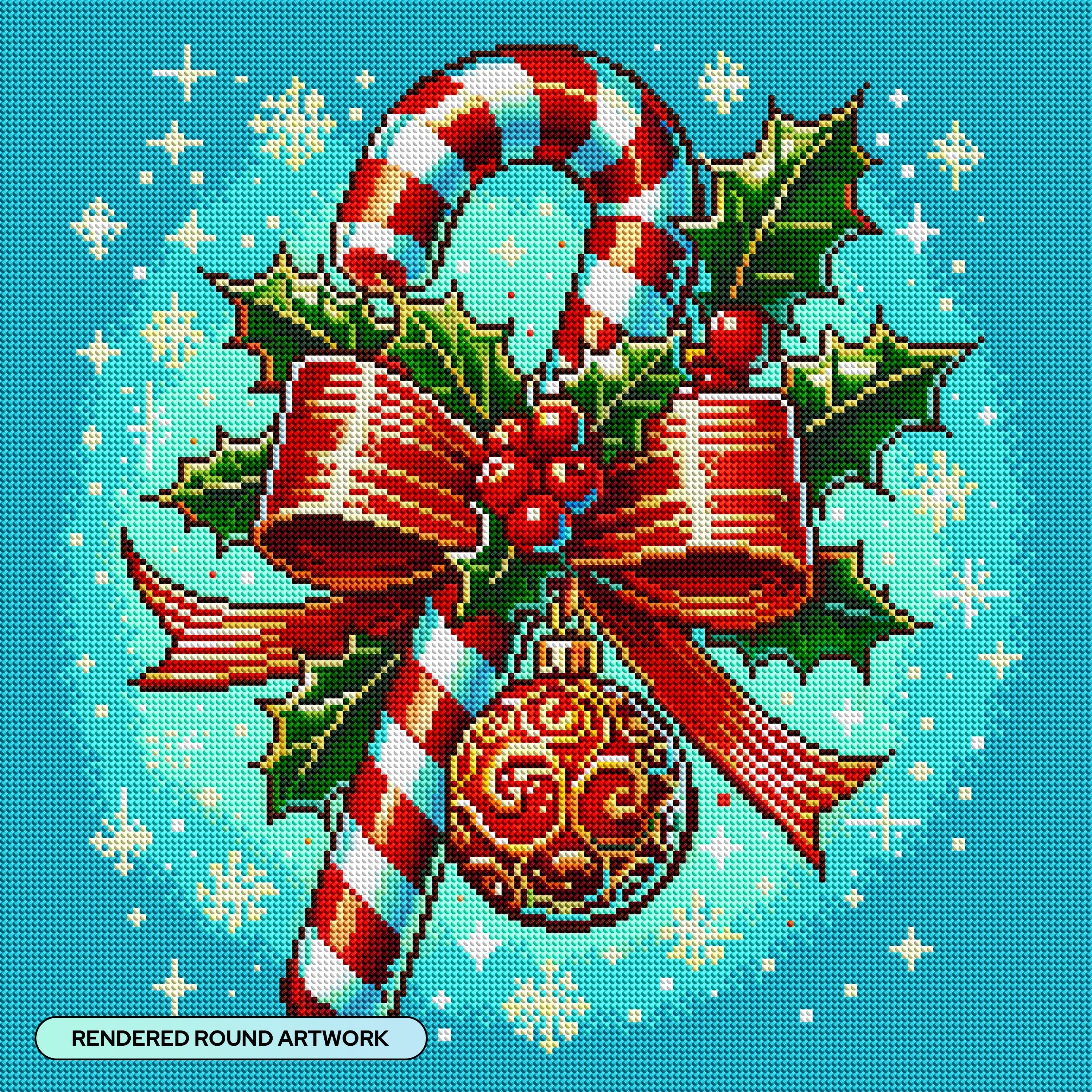Diamond Painting Candy Cane 18.6" x 18.6" (47.3cm x 47.3cm) / Round with 34 Colors including 2 ABs and 4 Fairy Dust Diamonds / 29,584