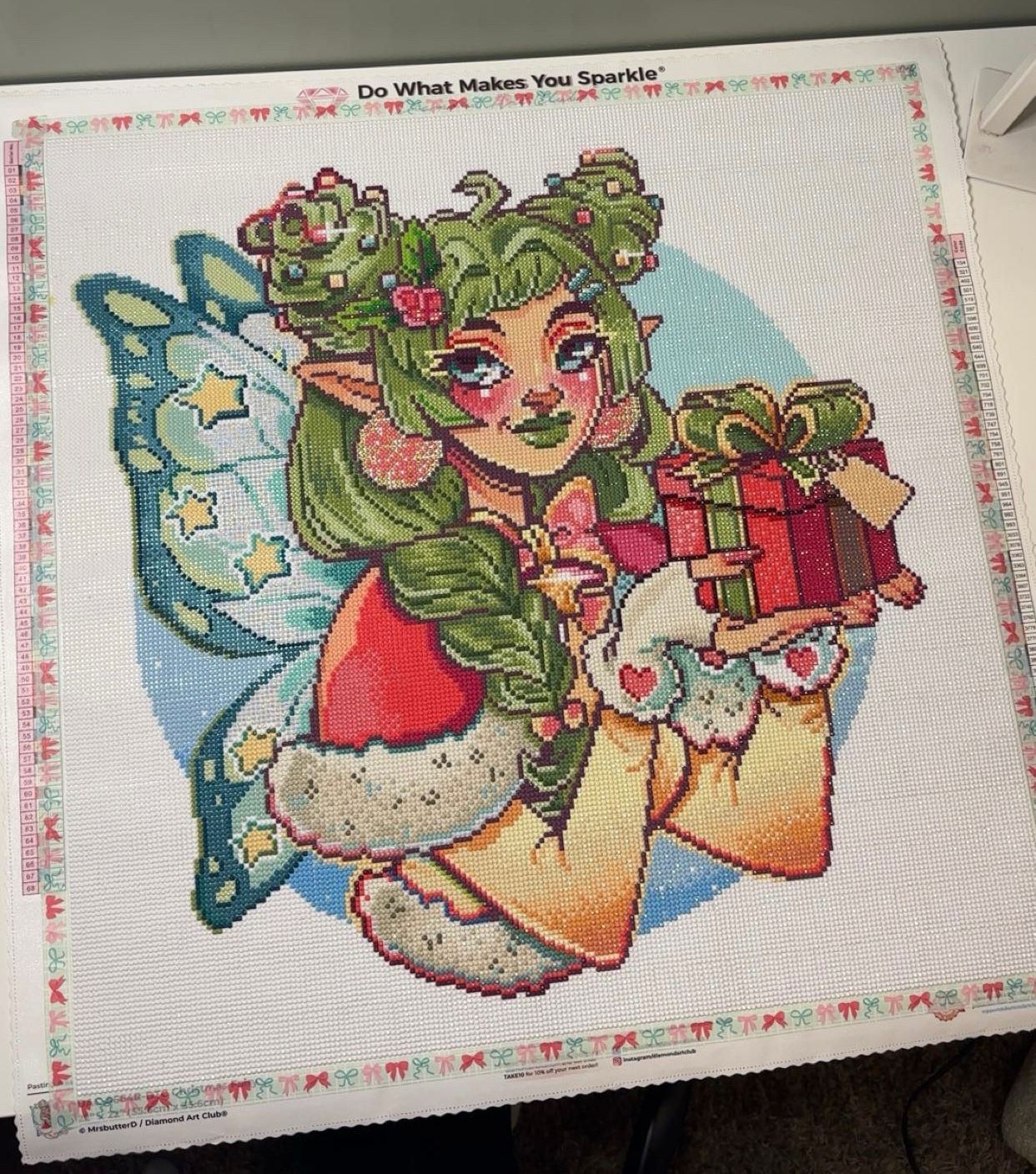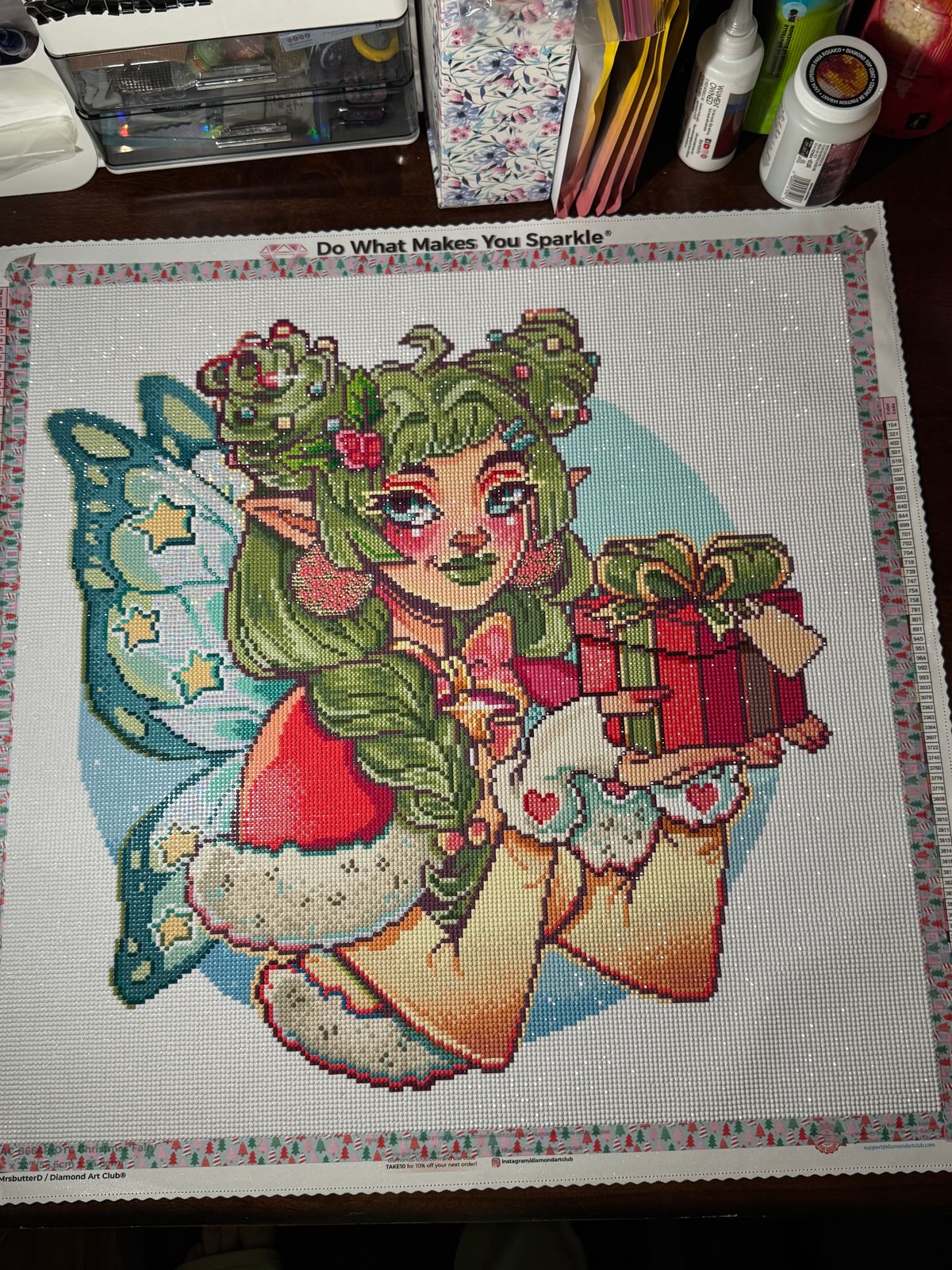 My 11 year old niece and I worked on this kit together. It was a lot of fun, and she was really good at diamond painting. The Christmas fairy turned out great!!!