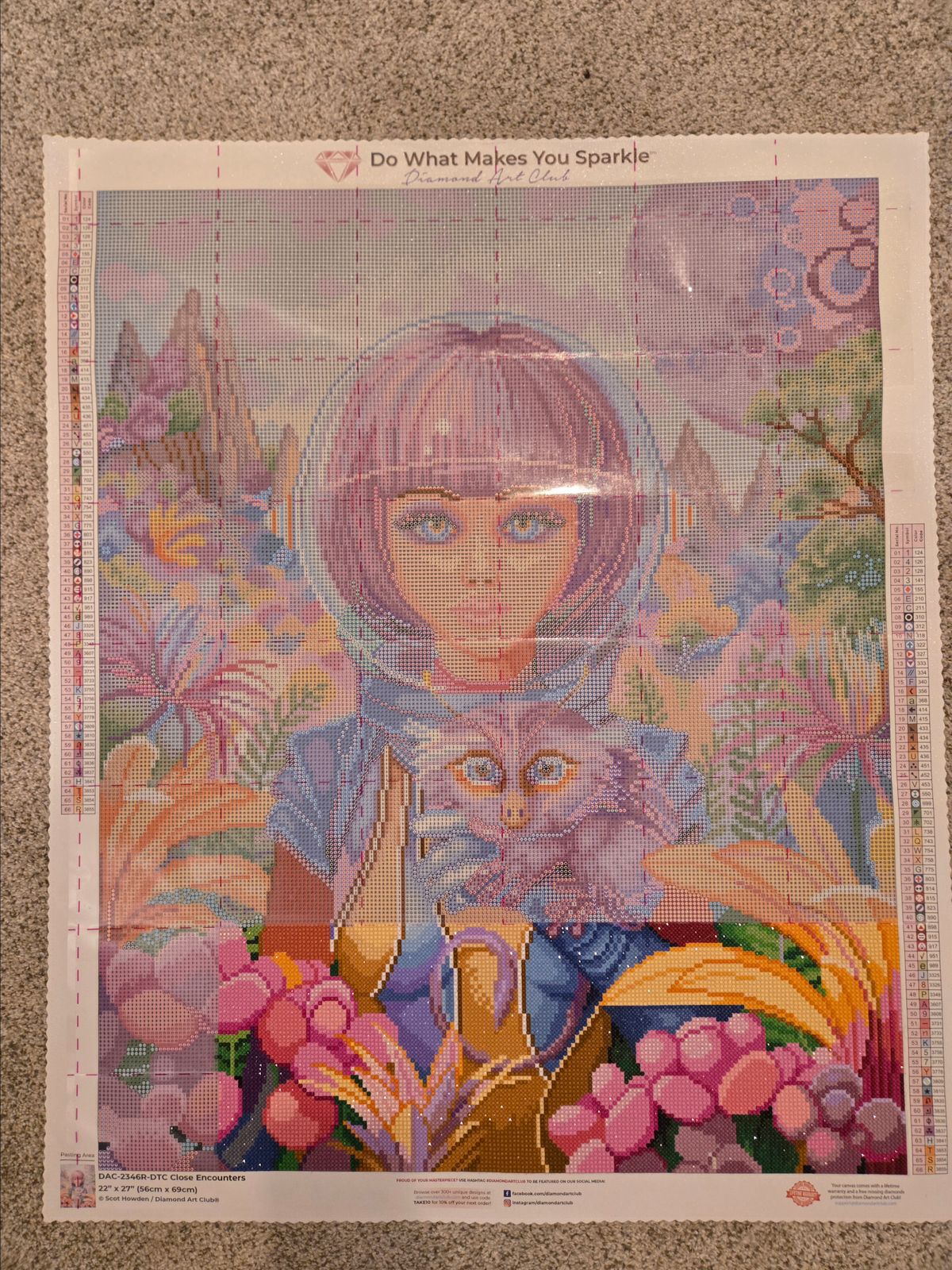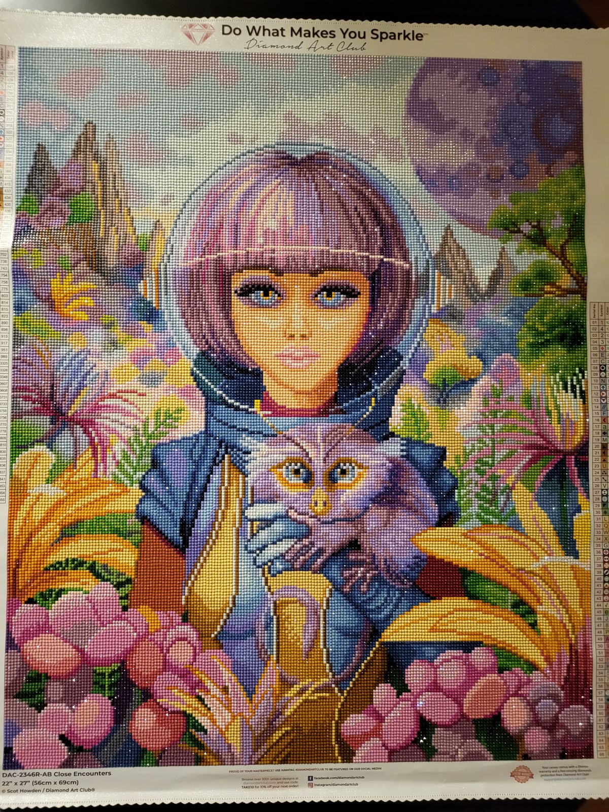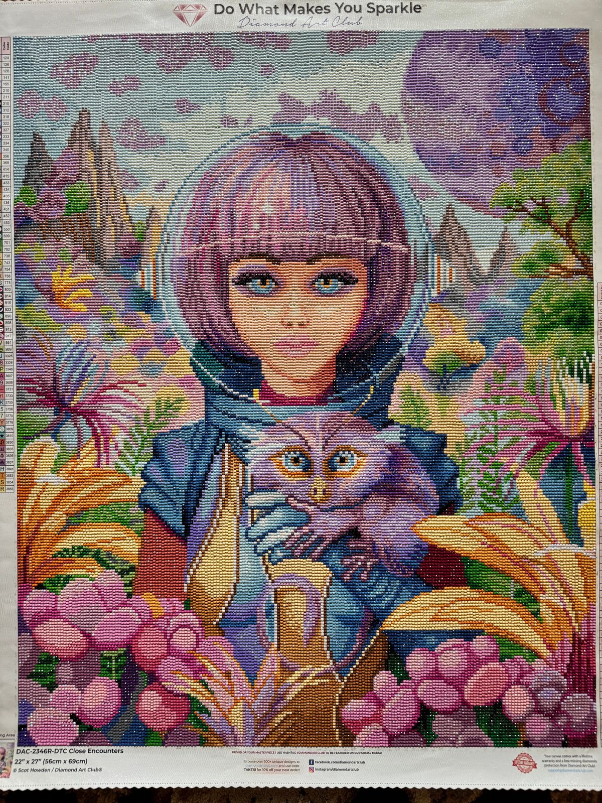 The design strikes a perfect balance with generous color blocking (so satisfying!) mixed with just a touch of confetti to keep it interesting. It made for a relaxing yet engaging project. If you love bold colors, smooth canvases, and that signature Diamond Art Club sparkle, Close Encounters will not disappoint.