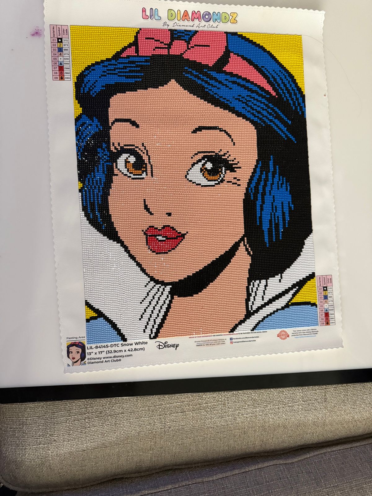 I bought this for a Christmas gift for a friend's mentally challenged daughter. She works on Diamond Art all the time and has finished some beautiful pieces. Snow White is her favorite Disney character.