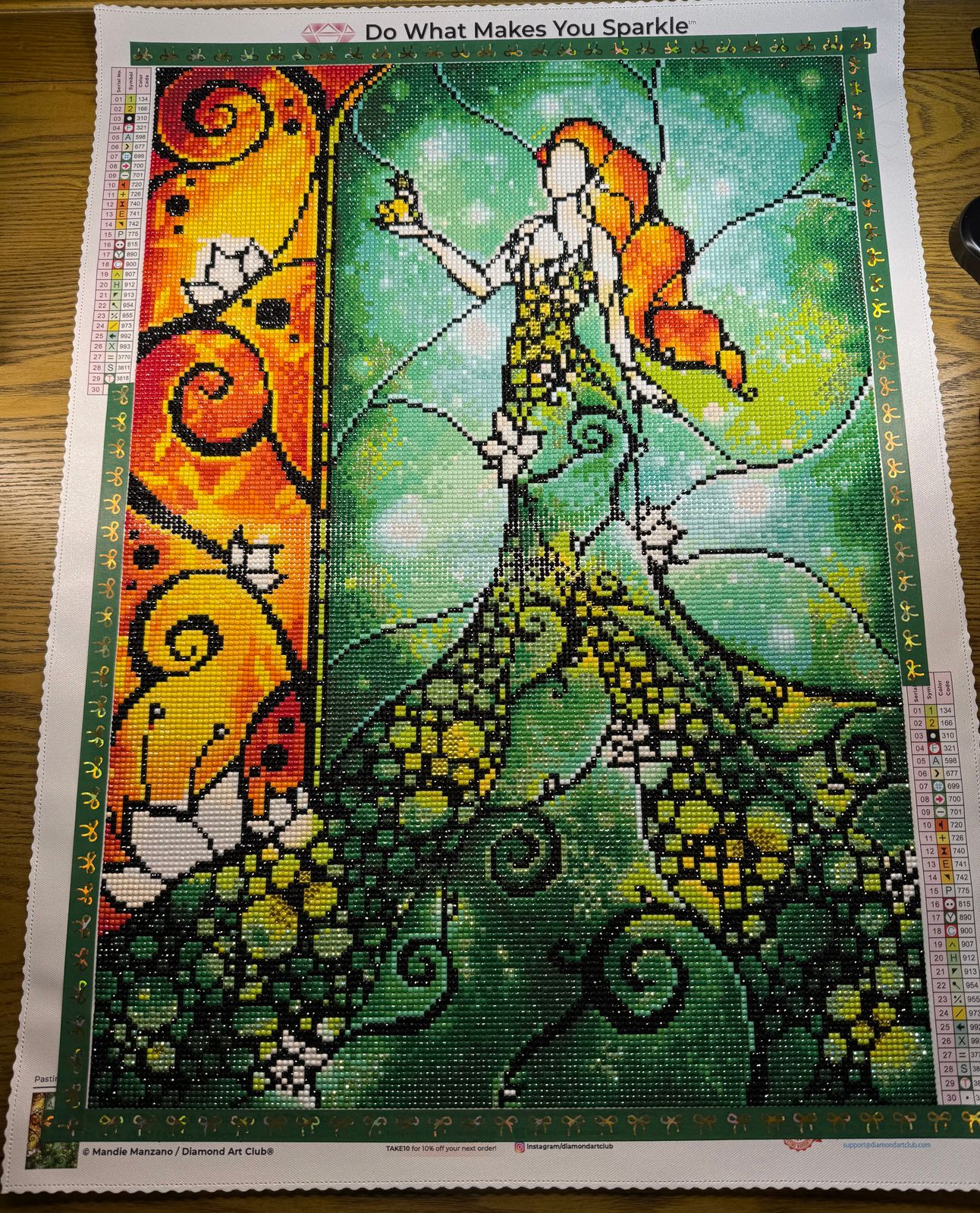 I love Mandie Manzano’s artwork! This canvas was a joy to work on, so sparkly and vibrant. It worked up pretty easy and is just stunning.