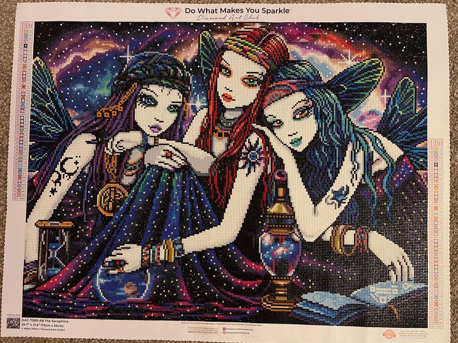 I submitted my first review before I had finished this painting, so I figured I would update with a new pic and video. As the title mentions, this canvas is definitely heavy on the confetti, so it made for a more challenging piece. I didn't mind that though, because it made completing it that much more rewarding! The final product is absolutely stunning. These winged beauties are so sparkly, and there are just the right amount of enhancement drills to step the painting up to the next level without making it look cheesy.