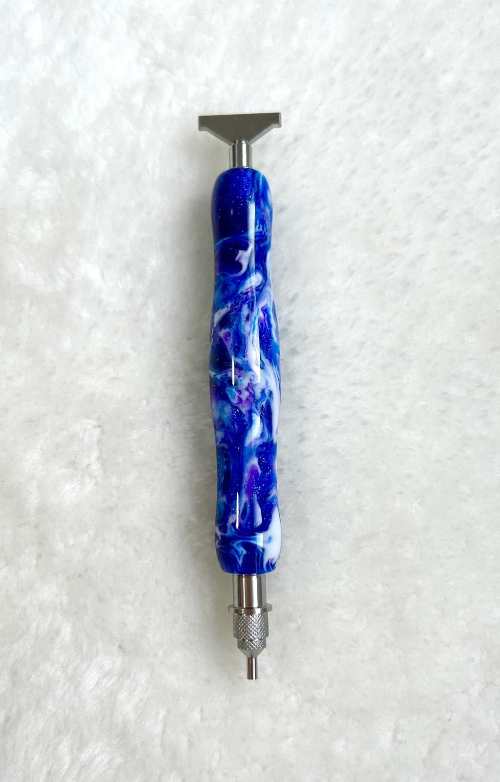 Add a touch of flair to your diamond painting with the Twist And Pick Premium Pen - Cyan Calypso Swirl. Designed to stand out with its vibrant swirls, this pen delivers both style and precision, featuring our Forever Stainless Steel Single Placer Tip for Twist & Pick Pens pre-equipped on one end. This premium, refillable tip offers unmatched precision and durability, ensuring perfect gem placement with every use. The other end of the pen is left empty and is compatible with our range of Twist-On (Threaded) stainless steel applicators, allowing you to customize your setup as needed. Note: This pen is not compatible with regular non-threaded tips. Ergonomically crafted for a comfortable grip, it measures around 9.6 cm (3.8 inches) without the tip, offering excellent control. Built for long-lasting performance, this pen will upgrade your diamond painting experience.