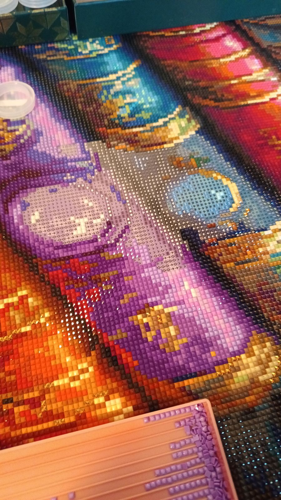 Not as much color blocking as you might think. This one has a lot of confetti blobs. I absolutely loved working on it. Started July 18 finished September 20. About 30 minutes a day before work.