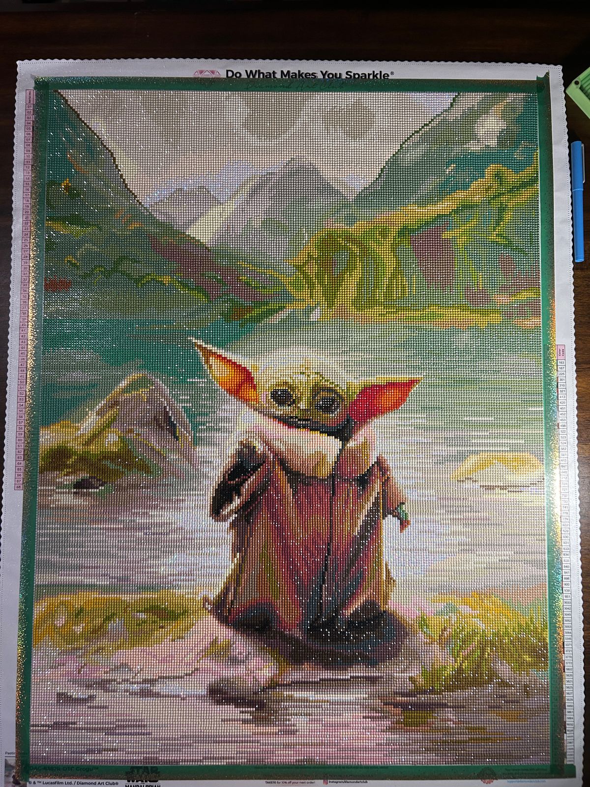 The diamonds themselves sparkle beautifully under the light, adding a magical touch that makes Grogu look even more precious. The canvas is clearly printed, which makes it easy to follow along without straining your eyes.