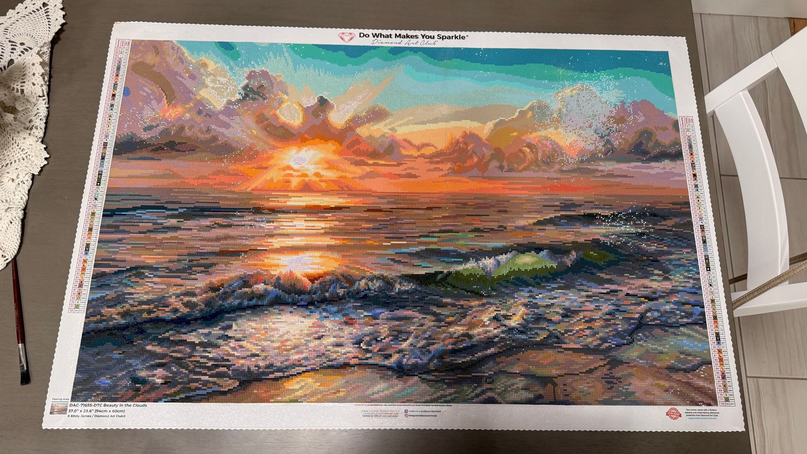 This one really captures the beautiful sunset over the ocean. It will be beautiful when completed.