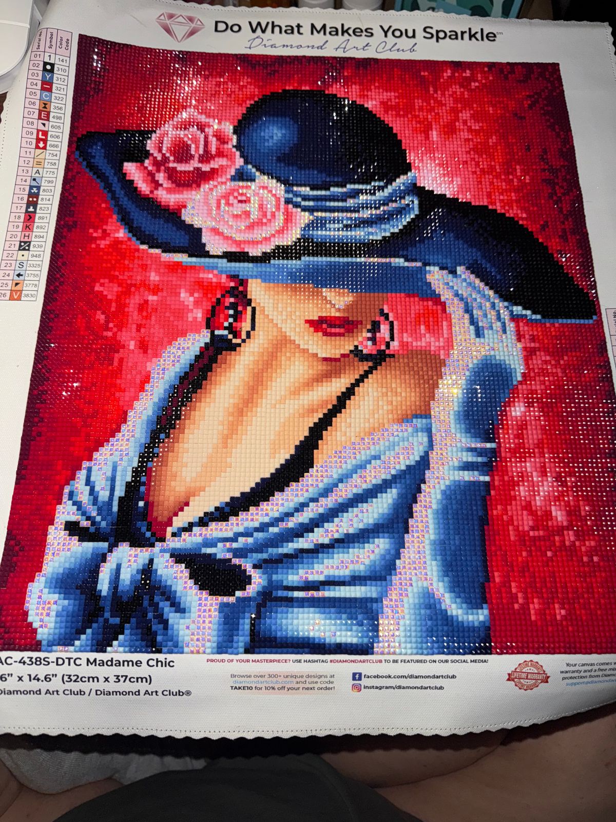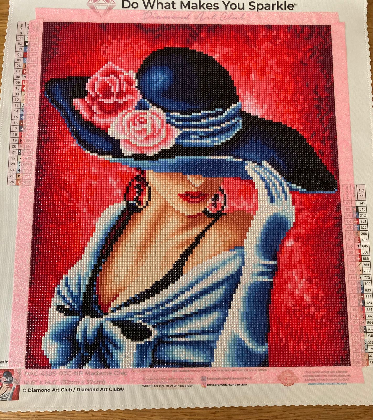 I was very excited, when I received notification that Madame Chic, was in stock again. She’s lovely. One of my more challenging pieces; however, well worth it. I take it slow and easy . . . I can’t wait to see end result. I already know, where she’s going to go. I love Diamond Art by Leisure Arts kits.