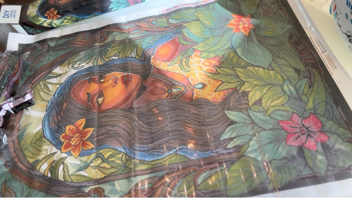 I just had to have this diamond painting. I think she is so pretty! This is such a beautiful diamond painting. I love the color palette they chose a multiude of colors. I need to finish the diamond painting I'm on now so I can start this one.