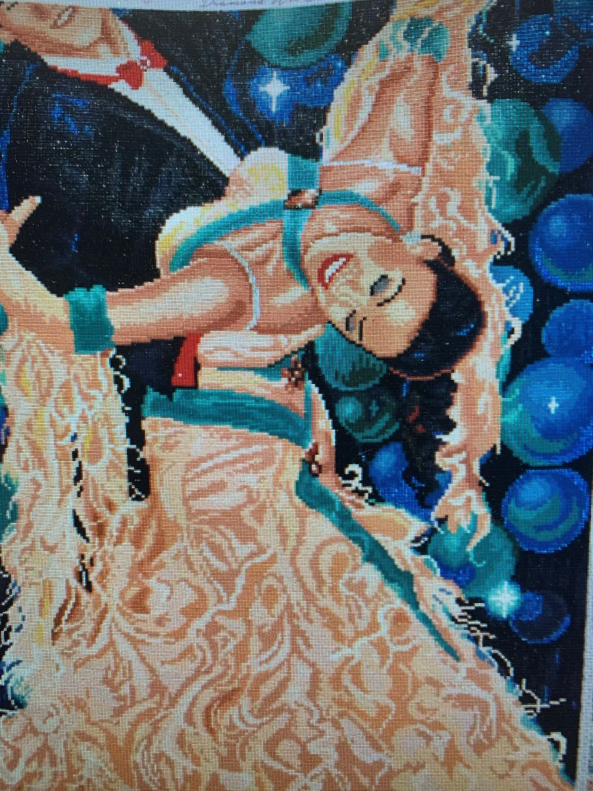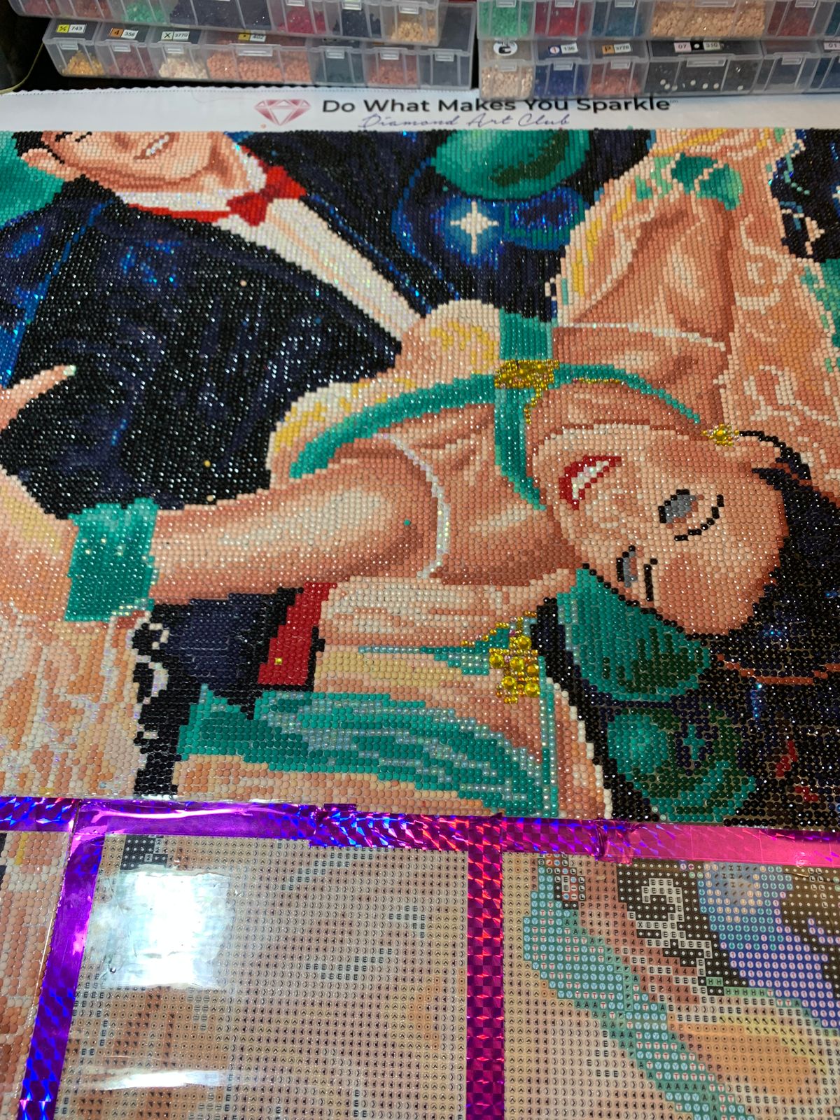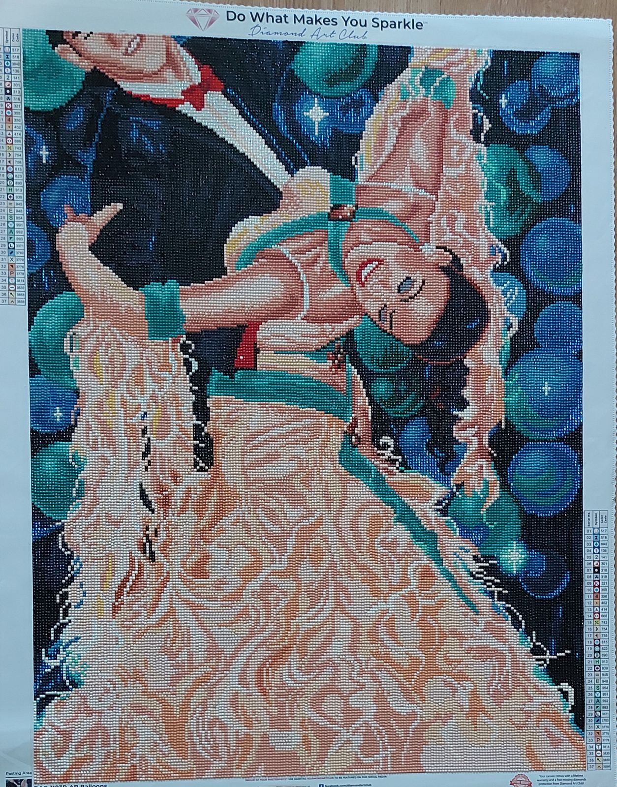 This was so much fun to do! The rounds go really quickly. Minimal trash drills. The colors are vibrant and gorgeous… especially the golden dress!