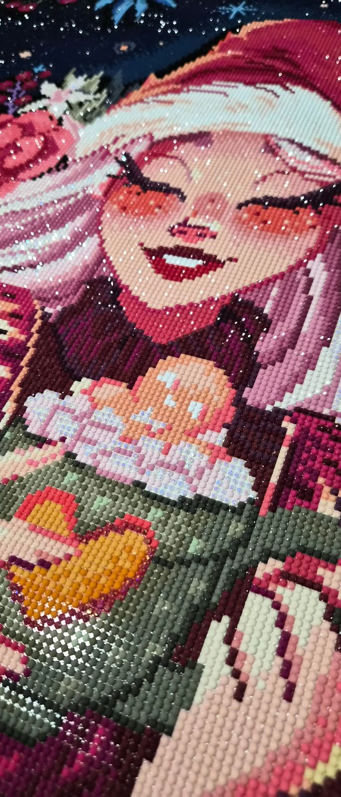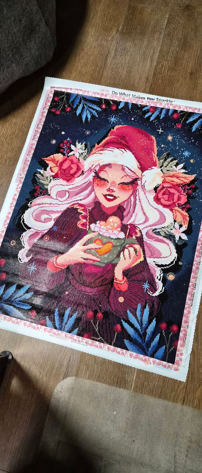 Such a fun one to do during the holidays and she turned out beautiful. Good size canvas and quality was great as always. Colors were also fun, adding some blues and light peaches, in with your traditional holiday colors. Love the artwork and recommend it.