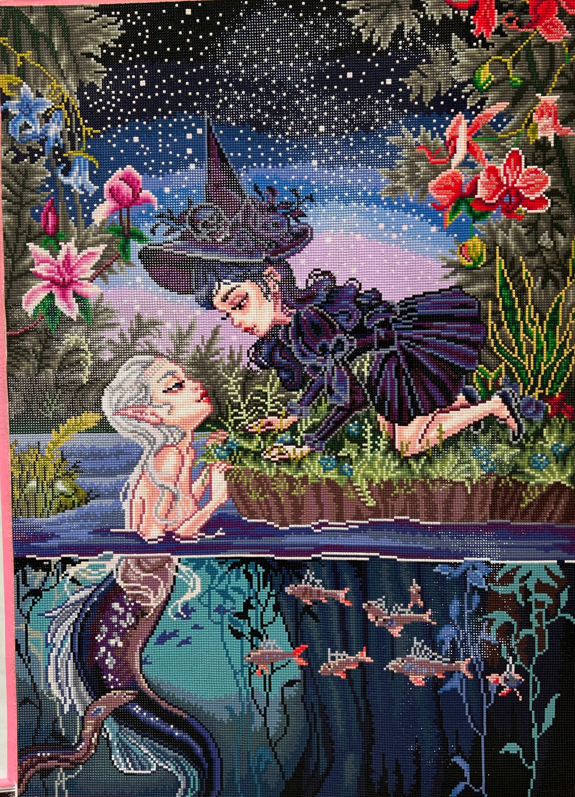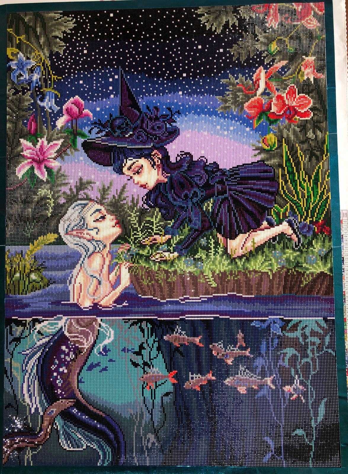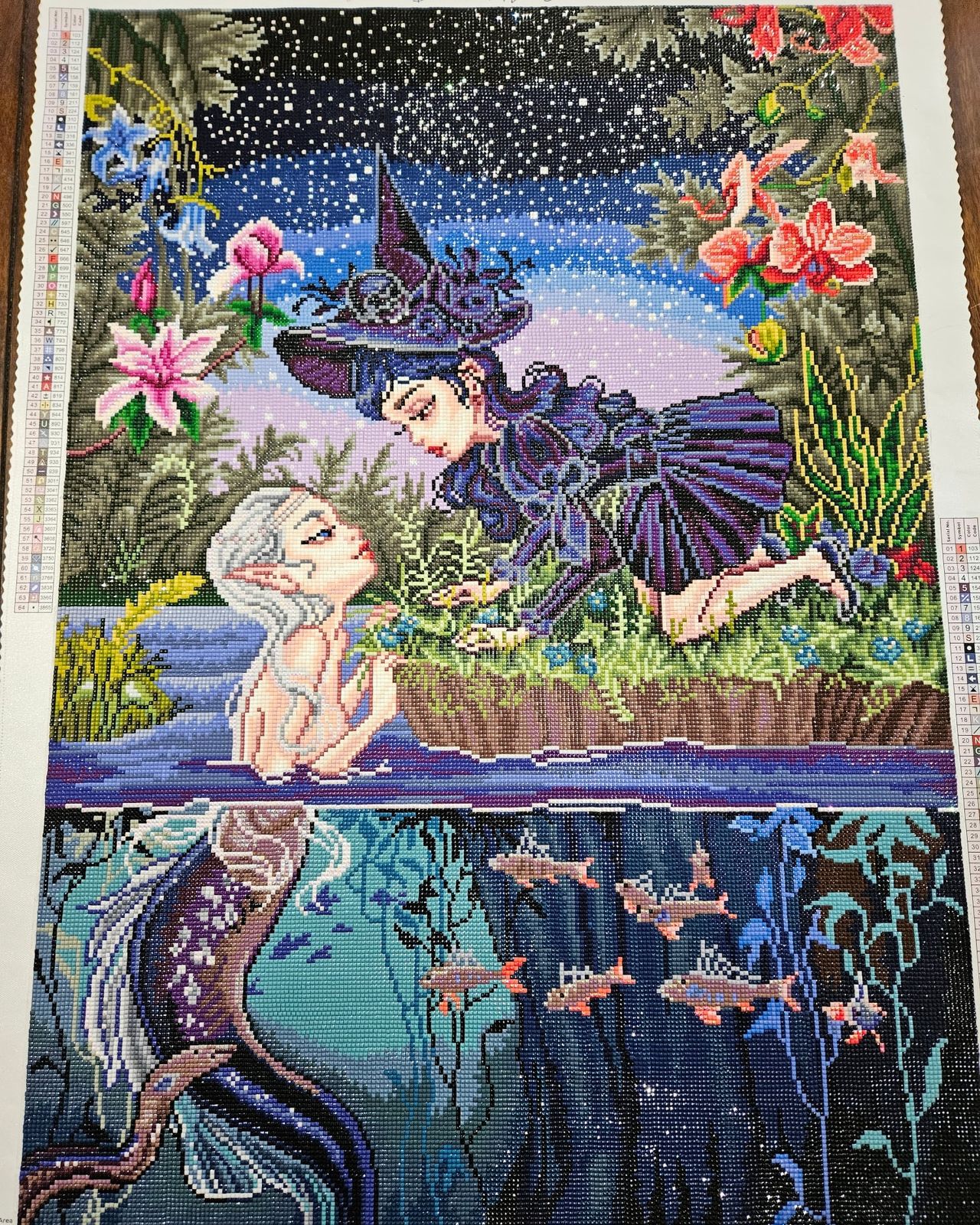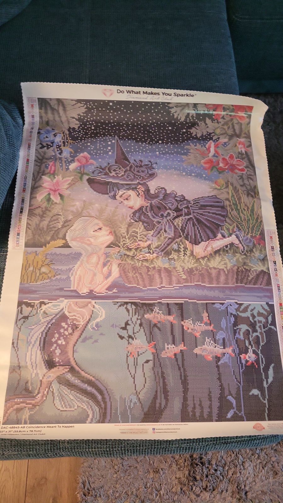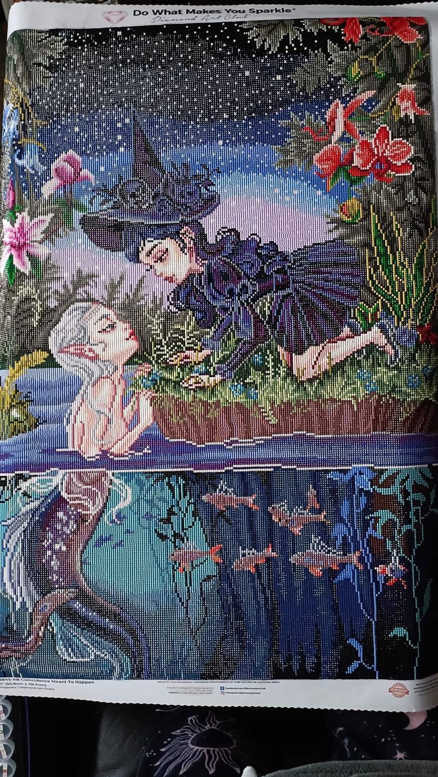 This is my favorite finish to date from Diamond Art Club! The details are absolutely amazing, and the amount of gradual change in the color palette as I progressed to the bottom was a lot of fun. I thought about putting in some fairy dust drills from what I've saved of other kits but the placement of ABs is just perfect.
