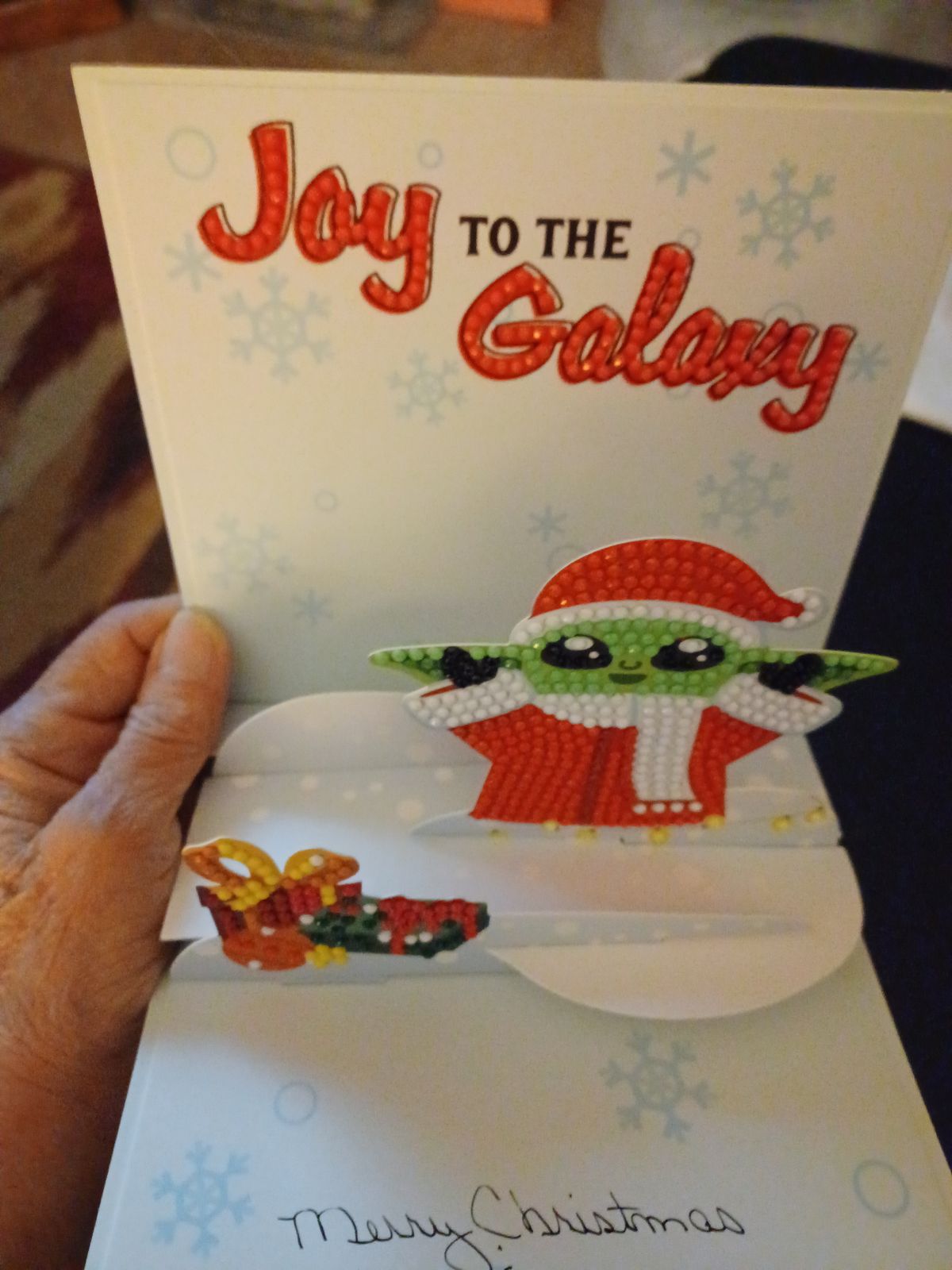 Bought this to make for my neighbor, he LOVES Star Wars. It was a nice break from the large WIP that I am doing and it was alot of fun. Only thing I didn't like about it was you have to hold it at an awkward angle (so you don't damage the pop-up) to place the diamonds on the inside as it is already assembled.