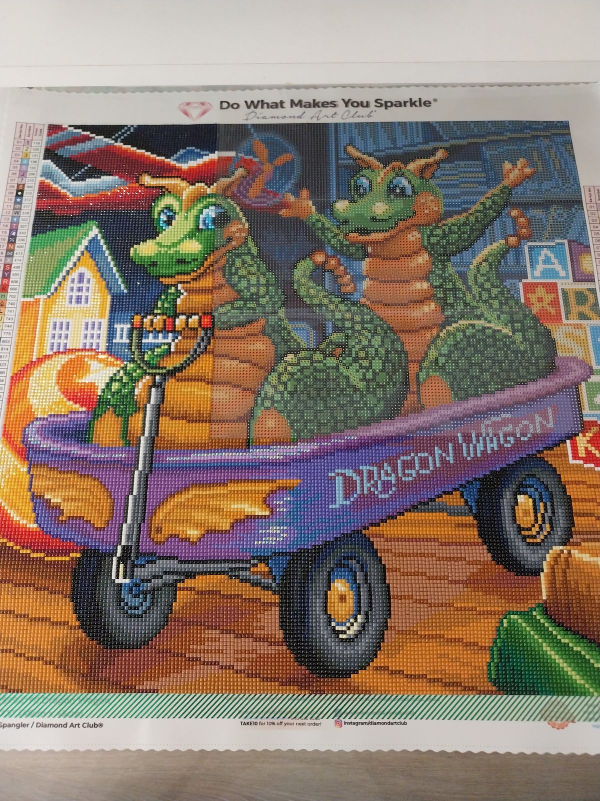 This painting was as much to do as the dragons are having fun in their wagon. Super fun and cute. Another winner from Spangler and DAC.