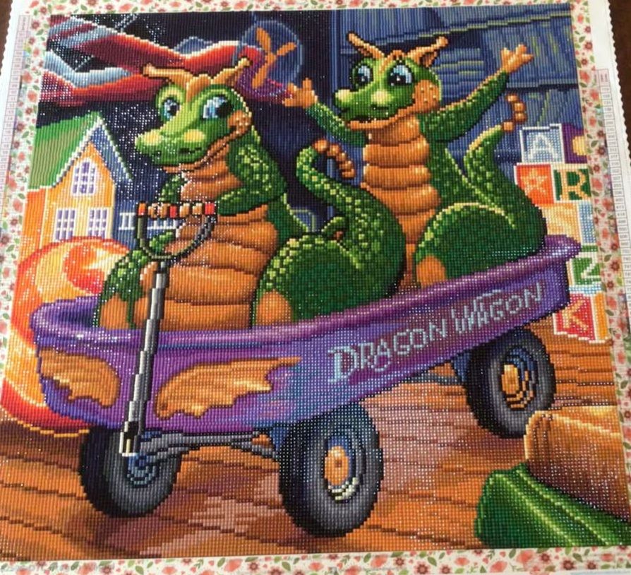 This one was fun. Enjoyed workin g with the bright colors. End result was great. Going to give it to the little boy down the road.