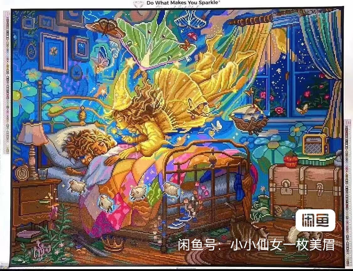一开始就喜欢这幅画的色彩搭配 好看什么颜色都有 仙子金灿灿的 与梦幻的颜色搭配是钻石画的精髓 总之太喜欢了